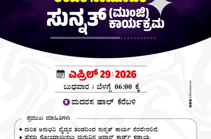 ಮಂಗಳೂರು: ಇಂಡಿಯನ್ ಗ್ರಾಂಡ್ ಮುಫ್ತಿ ಸುಲ್ತಾನುಲ್ ಉಲಮಾ ಎ.ಪಿ ಉಸ್ತಾದರು ಮೇ 2 ರಂದು ಪುತ್ತೂರಿನಲ್ಲಿ ನಡೆಯಲಿರುವ ‘ಮಾದರಿ ಮದುವೆ’…