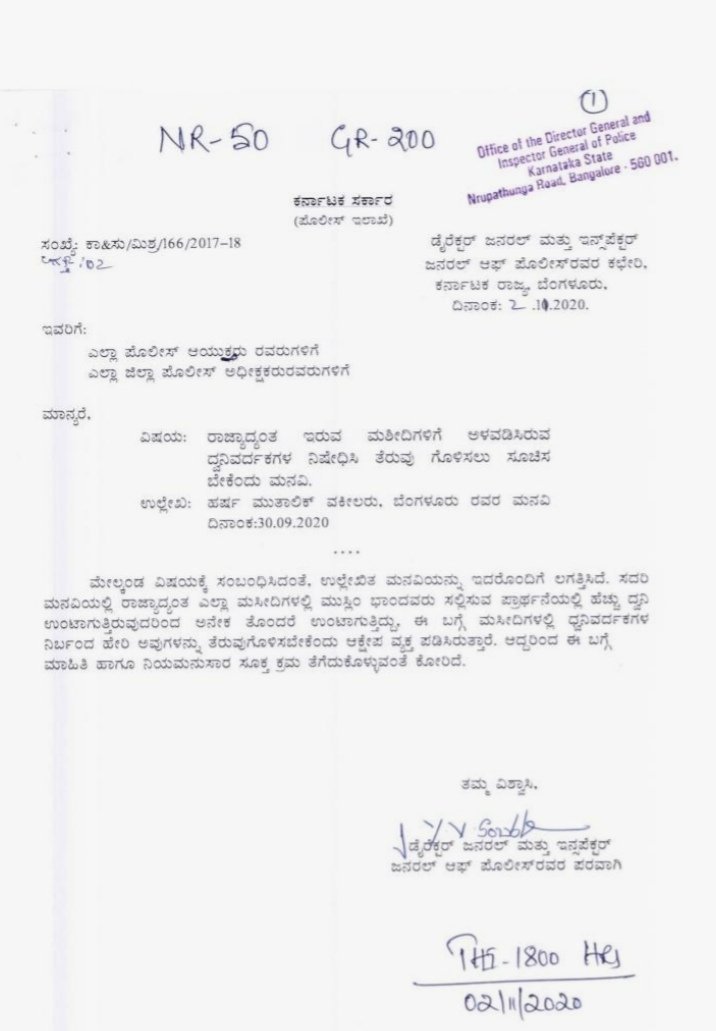 ಧ್ವನಿವರ್ಧಕ ಕುರಿತು ಜಾಲತಾಣಗಳಲ್ಲಿ ಹರಿದಾಡುತ್ತಿರುವ ಪತ್ರವು ಮೇಲಾಧಿಕಾರಿಗಳ ಪೂರ್ವಾನುಮತಿ ಇಲ್ಲದೆ ಕ್ಲರ್ಕ್ ಮೂಲಕ ಬಿಡುಗಡೆಯಾಗಿರುವ ಪತ್ರವಾಗಿದೆ.