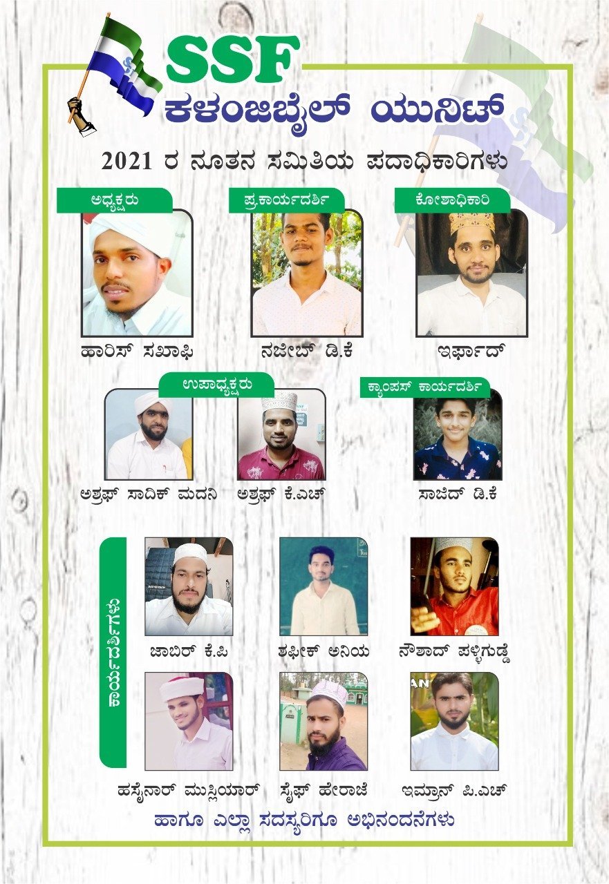 ನೂತನ ಸಮಿತಿಯ ಅಧ್ಯಕ್ಷರಾಗಿ ಹಾರಿಸ್ ಮುಈನೀ ಸಖಾಫಿ ಕರ್ಪಾಡಿ, ಉಪಾಧ್ಯಕ್ಷರಾಗಿ ಅಶ್ರಫ್ ಸ್ವಾಧಿಕ್ ಮದನಿ ಮತ್ತು ಅಶ್ರಫ್ ಕೆ.ಎಚ್, ಪ್ರಧಾನ ಕಾರ್ಯದರ್ಶಿಯಾಗಿ ನಜೀಬ್ ಡಿ.ಕೆ, ಕೋಶಾಧಿಕಾರಿಯಾಗಿ ಇರ್ಫಾದ್ ಪಿಕೆ, ಕ್ಯಾಂಪಸ್ ಕಾರ್ಯದರ್ಶಿಯಾಗಿ ಸಾಜಿದ್ ಡಿ.ಕೆ ಹಾಗೂ ಕಾರ್ಯದರ್ಶಿಗಳಾಗಿ ಜಾಬಿರ್ ಕೆಪಿ, ನೌಶಾದ್ ಪಳ್ಳಿಗುಡ್ಡೆ, ಶಫೀಕ್ ಅನಿಯ, ಸೈಫ್ ಹೇರಾಜೆ, ಹಸೈನಾರ್ ಮುಸ್ಲಿಯಾರ್,ಇಮ್ರಾನ್ ಪಿ.ಎಚ್ ಹಾಗೂ 22 ಸದಸ್ಯರನ್ನೊಳಗೊಂಡ ನೂತನ ಸಮಿತಿಯನ್ನು ರಚಿಸಲಾಯಿತು.