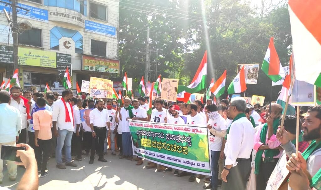 ರೈತ ವಿರೋಧಿ ಮೂರು ಕರಾಳ ಶಾಸನಗಳ ಮಾರಕ ಪರಿಣಾಮ ಬಗ್ಗೆ ಪ್ರಮುಖ ಸಂಘಟನೆಗಳ ಮುಖ್ಯಸ್ಥರು ಕಿರು ಪ್ರಾಥಮಿಕ ಭಾಷಣ ನಡೆಸಿದರು. ನಂತರ, ರ್ಯಾಲಿಯು ದ.ಕ. ಜಿಲ್ಲಾಧಿಕಾರಿ ಕಚೇರಿಯಿಂದ, ರಾವ್ ಅಂಡ್ ರಾವ್ ವೃತ್ತದ ಮೂಲಕ ಸಾಗಿ ಮಿನಿ ವಿಧಾನ ಸೌಧ ಬಳಿ,ವಿಸ್ತೃತ ಪ್ರತಿಭಟನೆಗೆ ಸಾಗಿದೆ. ರ್ಯಾಲಿಯಲ್ಲಿ ಭಾರತದ ದ್ವಜಗಳು, ರೈತ ಪರ ಭಿತ್ತಿ ಪತ್ರ ಗಳು, ಡಾ ಬೀ.ಆರ್.ಅಂಬೇಡ್ಕರ್ ರವರ ಫೋಟೋ ಪ್ರದರ್ಶಿಸಲಾಯಿತು.