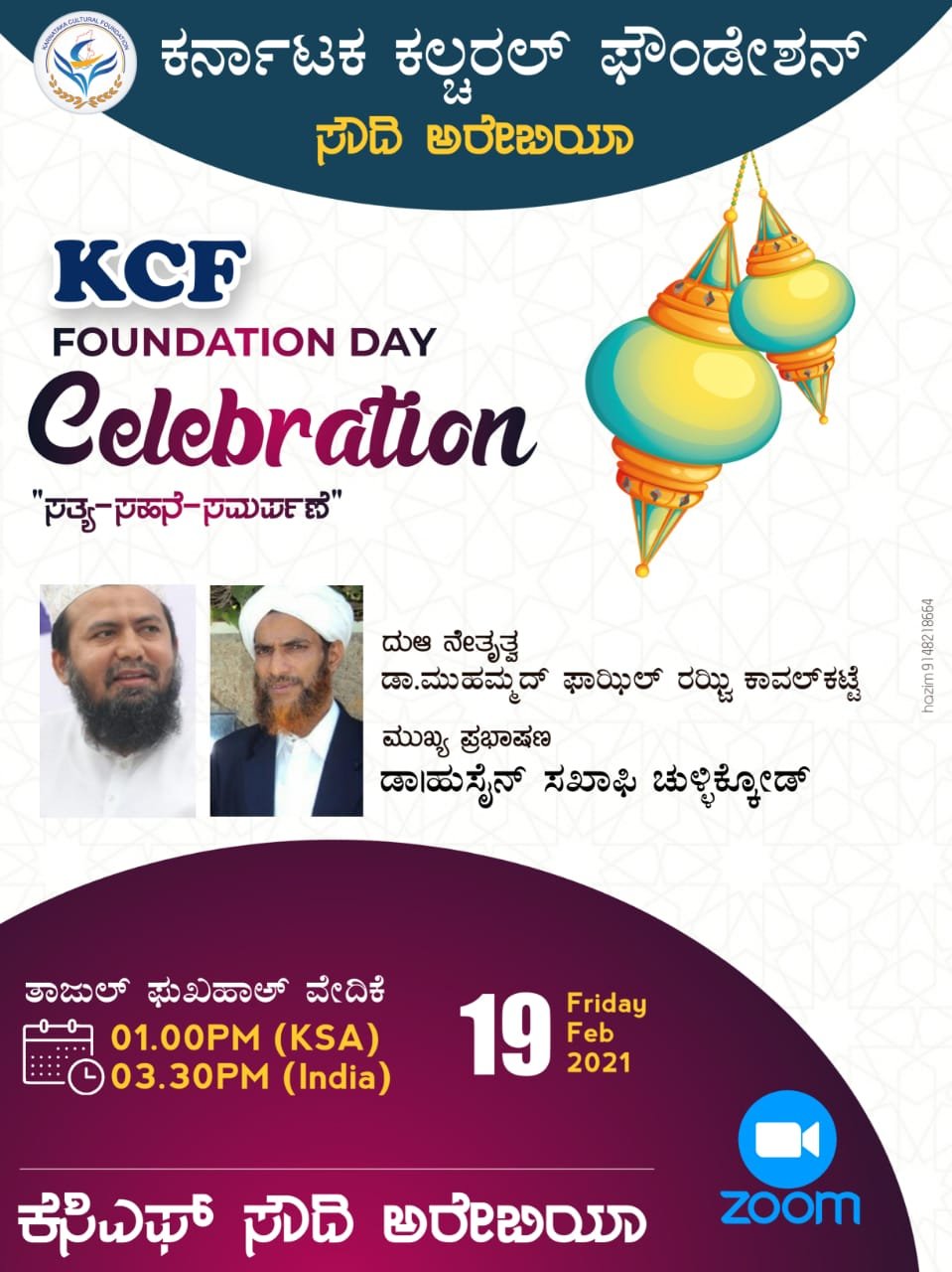 ಕರ್ನಾಟಕ ಕಲ್ಚರಲ್ ಫೌಂಡೇಶನ್ (ಕೆಸಿಎಫ್) ಕಳೆದ ಎಂಟು ವರ್ಷಗಳಿಂದ ಉತ್ತಮವಾದ ರೀತಿಯಲ್ಲಿ ಕಾರ್ಯಾಚರಿಸಿ ಈಗ ಒಂಬತ್ತನೇ ವರ್ಷದ ಫೌಂಡೇಶನ್ ಡೇಯನ್ನು ಸೌದಿ ಅರೇಬಿಯಾ ರಾಷ್ಟ್ರೀಯ ಸಮಿತಿ ಫೆಬ್ರವರಿ 19ರಂದು ಝೂಮ್ ಮೂಲಕ ಆಚರಿಸಲಾಯಿತು.