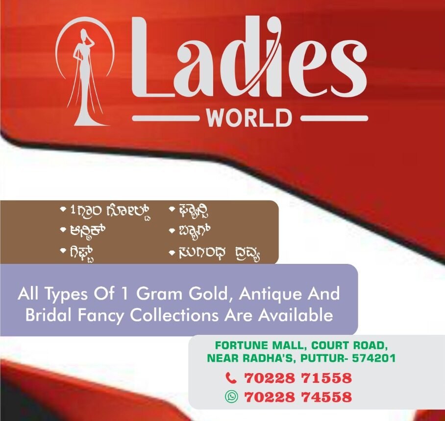 ಮಾರ್ಚ್ 01ರಂದು ಪುತ್ತೂರು ಕೋರ್ಟ್ ರಸ್ತೆಯಲ್ಲಿರುವ ಫೋರ್ಚುನ್ ಮಾಲಿನಲ್ಲಿ ಲೇಡೀಸ್ ವರ್ಲ್ಡ್ ಫ್ಯಾನ್ಸಿ ಶಾಪ್ ಶುಭಾರಂಭಾಗೊಂಡಿರುತ್ತದೆ. ಗ್ರಾಹಕರ ಅಭಿರುಚಿಗೆ ತಕ್ಕಂತೆ ವಿಶೇಷ ವಿನ್ಯಾಸಗಳ 1 ಗ್ರಾಂ ಆಭರಣ, ಅಂಟಿಕ್ಯು ಆಭರಣ, ವಿವಿಧ ಶೈಲಿಯ ಬ್ಯಾಗ್, ವದು ವರರಿಗೆ ಬೇಕಾದ ಬೆಲೆ ಬಾಳುವ ಕೈಗಡಿಯಾರ, ವಿದೇಶಿ ಪೆರ್ಫ್ಯೂಮ್, ಗಿಫ್ಟ್ ಇತ್ಯಾದಿಗಳ ಬೃಹತ್ತ್ ಸಂಗ್ರವನ್ನು ಹೊಂದಿರುತ್ತದೆ.
