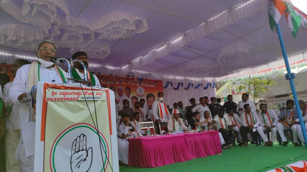 ‘ಯಡಿಯೂರಪ್ಪ ಅಧಿಕಾರಕ್ಕೆ ಬಂದ ನಂತರ ಒಂದೇ ಒಂದು ರೂಪಾಯಿ ಸಾಲ ಮನ್ನಾ ಮಾಡಲಿಲ್ಲ. 2018ನೇ ಸಾಲಿನ ಪ್ರಣಾಳಿಕೆಯಲ್ಲಿ 1 ಲಕ್ಷದವರೆಗಿನ ಸಾಲ ಮನ್ನಾ ಮಾಡುವುದಾಗಿ ಘೋಷಿಸಿದ್ದರು. ಆದರೆ ಸಾಲ ಮನ್ನಾ ಮಾಡಿಲ್ಲ. ಇಂಥವರಿಗೆ ನೀವು ಓಟು ಕೊಡ್ತೀರಾ’ ಎಂದು ಜನರನ್ನು ಪ್ರಶ್ನಿಸಿದರು.