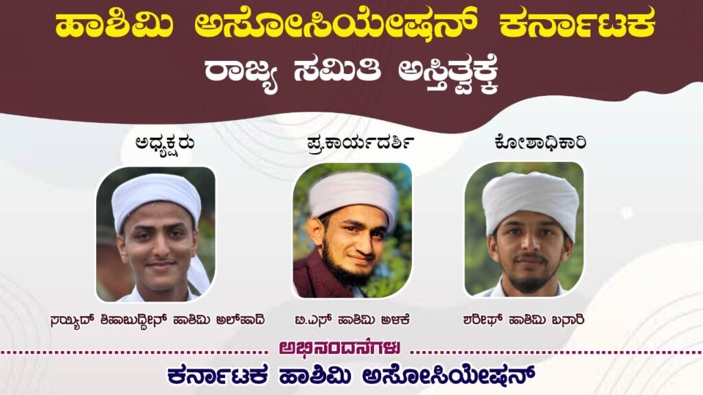 ಕೇರಳದ ಪ್ರತಿಷ್ಠಿತ ವಿದ್ಯಾ ಸಂಸ್ಥೆಯಾದ ಜಾಮಿಯತುಲ್ ಹಾಶಿಮಿಯದಿಂದ ಬಿರುದು ಪಡೆದು ಧಾರ್ಮಿಕ ಸೇವಾ ರಂಗಕ್ಕಿಳಿದ ಹಾಶಿಮಿಗಳ ಸಂಘಮವು ದಿನಾಂಕ 09-04-2021 ರಂದು ಶೈಖುನಾ ಬಾದುಶ ಸಖಾಫಿ ಉಸ್ತಾದರ ನೇತೃತ್ವದಲ್ಲಿ Alappuzha ಹಾಶಿಮಿಯ ಕ್ಯಾಂಪಸಿನಲ್ಲಿ ನಡೆಯಿತು. ಈ ಸಮಾರಂಭದಲ್ಲಿ ಹಾಶಿಮಿ ಅಸೋಸಿಯೇಷನ್ ಕರ್ನಾಟಕ ರಾಜ್ಯ ಸಮಿತಿಯನ್ನು ಅಸ್ತಿತ್ವಕ್ಕೆ ತರಲಾಯಿತು.