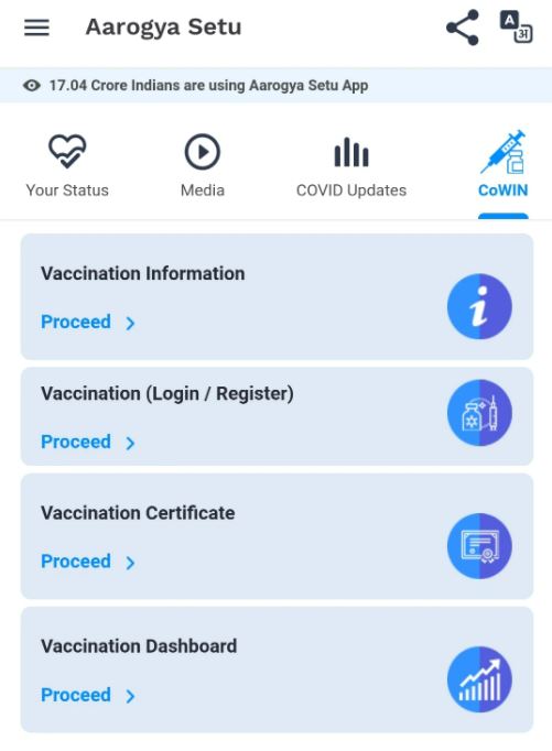 Aarogya Setu ಅಪ್ಲಿಕೇಶನ್ ನಿಂದ ಕೆಳಗೆ ವಿವರಿಸಲಾದ ಹಂತಗಳನ್ನು ಅನುಸರಿಸುವ ಮೂಲಕವೂ ನಿಮ್ಮ ವಾಕ್ಸಿನ್ ಸರ್ಟಿಫಿಕೇಟ್ ಪಡೆಯಬಹುದಾಗಿದೆ.