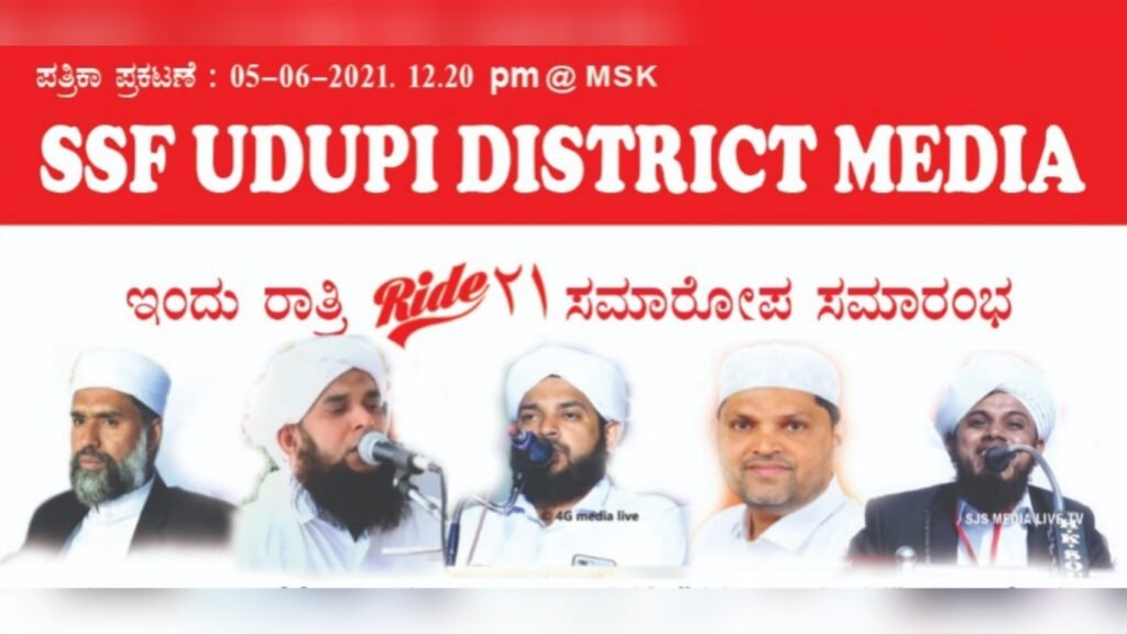 ಉಡುಪಿ, ಜೂನ್ 05: “ಸತ್ಯಕ್ಕಾಗಿ ಯುವತ್ವ” ಎಂಬ ಧ್ಯೇಯದೊಂದಿಗೆ ಎಸ್ಸೆಸ್ಸೆಫ್ ಉಡುಪಿ ಜಿಲ್ಲಾ ಸಮಿತಿ ಅಧೀನದಲ್ಲಿ ಕಳೆದ ನಾಲ್ಕು ದಿನಗಳಿಂದ ನಡೆಯುತ್ತಿರುವ Ride ٢١ “Online Meetup” ಕಾರ್ಯಕ್ರಮದ ಸಮಾರೋಪ ಸಮಾರಂಭ & ಕಾರ್ಯಕರ್ತರ ಒಗ್ಗೂಡು ಇಂದು ರಾತ್ರಿ 09 ಗಂಟೆಯಿಂದ ಝೂಮ್ ಹಾಗೂ ಯು-ಟೂಬ್ ಚಾನಲ್ ಮುಖಾಂತರ ನಡೆಯಲಿದ್ದು,