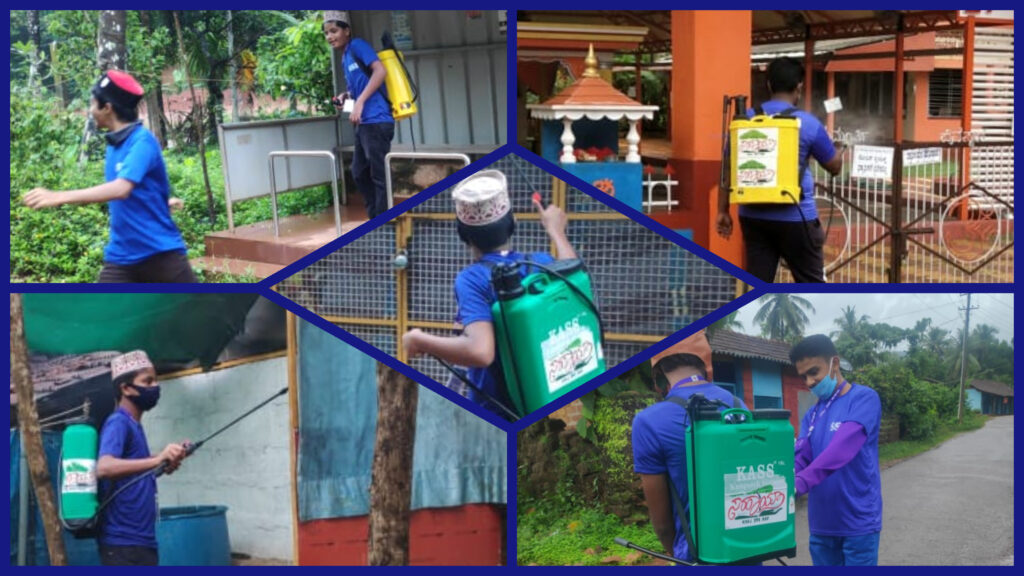 ಸುಳ್ಯ :ಕರ್ನಾಟಕ ಮುಸ್ಲಿಂ ಜಮಾಅತ್, ಎಸ್ ಎಸ್ ಎಫ್, ಎಸ್ ವೈ ಎಸ್, ಕೆಸಿಫ್ ಒಳಗೊಂಡ ಸಹಾಯ್ ತಂಡದಿಂದ ಸಂಪಾಜೆ ಗ್ರಾಮ ಪಂಚಾಯತ್ ಬಹುತೇಕ ಕಡೆಗಳಲ್ಲಿ ಮತ್ತು ಕೊಡಗು ಸಂಪಾಜೆ, ಕೊಯನಾಡು ಪ್ರದೇಶದ ಪೊಲೀಸ್ ಠಾಣೆ ಹಾಗು ಸರ್ಕಾರಿ ಆಸ್ಪತ್ರೆ, ಚರ್ಚ್, ದೇವಸ್ಥಾನ, ಮಸೀದಿ ಸೇರಿದಂತೆ ಹಲವಾರು ಕಡೆ ಸ್ಯಾನಿಟೈಸ್ ಮಾಡಲಾಯಿತು.