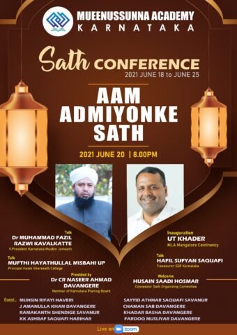 ಹಾವೇರಿ,ಮುಈನುಸುನ್ನಾ ಅಕಾಡೆಮಿ ಹಾವೇರಿ ಏಳನೇ ವರ್ಷೋತ್ಸವದ ಭಾಗವಾಗಿ ನಡೆದ ಸಾಥ್ ಕಾನ್ಫರೆನ್ಸ್ ಆಮ್ ಆದ್ಮಿಯೋಂಕೀ ಸಾಥ್ ಕಾನ್ಫರೆನ್ಸ್ ಸಂಸ್ಥೆಯ ಡೈರೆಕ್ಟರ್ ಹಾಗು ಕರ್ನಾಟಕ ಸರ್ಕಾರ ಯೋಜನಾ ಆಯೋಗದ ಸದಸ್ಯರಾದ ಡಾ, ಸಿ ಆರ್ ನಸೀರ್ ಅಹ್ಮದ್ ಇವರ ಅಧ್ಯಕ್ಷತೆಯಲ್ಲಿ ನಡೆಯಿತು… ಕಾರ್ಯಕ್ರಮ ವನ್ನು ಮಾಜಿ ಸಚಿವರೂ, ಮಂಗಳೂರು ಶಾಸಕರಾದ UT, ಖಾದರ್ ಉದ್ಘಾಟನೆ ಮಾಡಿದರು.