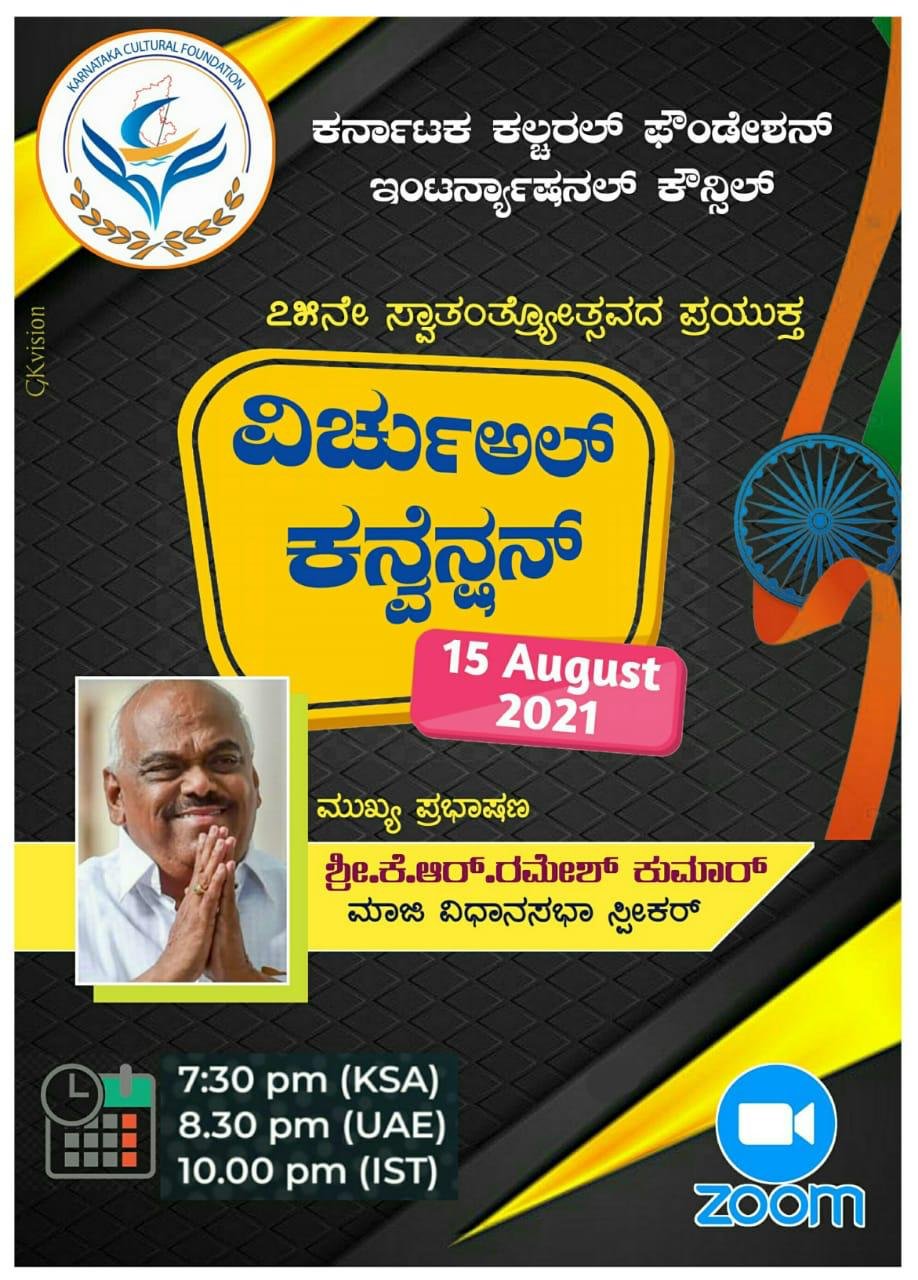 ಇದರಂತೆ ಆಗಸ್ಟ್ 15ರಂದು ಭಾರತ ಸಮಯ ರಾತ್ರಿ 10.00 ಗಂಟೆಗೆ ಸರಿಯಾಗಿ ಝೂಮ್ ಅಪ್ಲಿಕೇಶನ್ ಮೂಲಕ Virtual Convention ಕಾರ್ಯಕ್ರಮ ನಡೆಯಲಿದೆ.