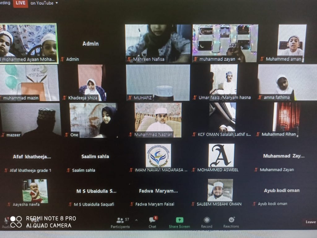 ಕರ್ನಾಟಕ ಕಲ್ಚರಲ್ ಫೌಂಡೇಶನ್ ಕೆಸಿಎಫ್ ಒಮಾನ್ ರಾಷ್ಟ್ರೀಯ ಸಮಿತಿಯ ಅಧೀನದಲ್ಲಿ ಕಾರ್ಯಚರಿಸುತ್ತಿರುವ ಇಮಾಮ್ ನವವಿ ಮದರಸ ಒಮಾನ್ ಇದರ ವತಿಯಿಂದ ಪ್ರವಾದಿ ಮುಹಮ್ಮದ್ (ಸ.ಅ) ರವರ ಜನ್ಮ ದಿನಾಚರಣೆಯ ಅಂಗವಾಗಿ ಮದರಸ ವಿದ್ಯಾರ್ಥಿಗಳ ವಿವಿಧ ಸ್ಪರ್ಧೆಯನ್ನು ಒಳಗೊಂಡ ಇಸ್ಲಾಮಿಕ್ ಸಾಂಸ್ಕೃತಿಕ ಚಿಣ್ಣರ ಕಲರವ ಮೀಲಾದ್ ಫೆಸ್ಟ್ ಕಾರ್ಯಕ್ರಮವು ಝೂಮ್ ಮೂಲಕ ಮದರಸ ಚಯರ್ಮೆನ್ ಸಯ್ಯಿದ್ ಆಬಿದ್ ಅಲ್ ಹೈದ್ರೋಸಿ ಕೊಡಗು ಇವರ ಅಧ್ಯಕ್ಷತೆಯಲ್ಲಿ ಜರುಗಿತ್ತು.