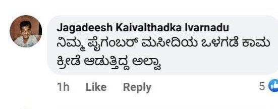 ಪರಧರ್ಮವನ್ನು ನಿಂದಿಸಬೇಡಿ ಅದು ನಿಮ್ಮ ಧರ್ಮ ವನ್ನು ನಿಂದಿಸಲು ಕಾರಣವಾಗಬಹುದು ಎಂಬ ಪವಿತ್ರ ಸಂದೇಶವನ್ನು ಕಲಿಸಿದ ಇಸ್ಲಾಮಿನ ಸಂದೇಶವಾಹಕರಾದ ಕೋಟ್ಯಾಂತರ ಮುಸಲ್ಮಾನರು ಜೀವಕ್ಕಿಂತಲೂ ಹೆಚ್ಚಾಗಿ ಪ್ರೀತಿಸುವ ಪ್ರವಾದಿ ಮುಹಮ್ಮದ್ ಸಲ್ಲಲ್ಲಾಹು ಅಲೈಹಿ ವಸಲ್ಲಮರವರನ್ನು ಸೋಶಿಯಲ್ ಮೀಡಿಯಾ ಮೂಲಕ ಹೀಯಾಳಿಸಿದ ಜಗದೀಶ ಕೈವಲ್ತಡ್ಕ ಐವರ್ನಾಡು ಎಂಬ ಕೋಮುವಾದಿ ನೀಚನ ವಿರುದ್ಧ ಸಂಬಂಧಪಟ್ಟ ಅಧಿಕಾರಿಗಳು ಶೀಘ್ರವೇ ಕ್ರಮ ಕೈಗೊಳ್ಳಬೇಕು.
