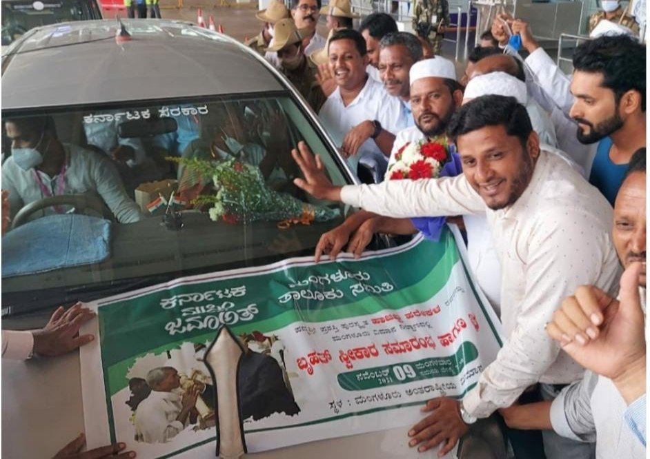 ಮಂಗಳೂರು, ನ.9: ಕರ್ನಾಟಕ ಮುಸ್ಲಿಂ ಜಮಾಅತ್ ಮಂಗಳೂರು ತಾಲೂಕು ಸಮಿತಿ ವತಿಯಿಂದ ಪದ್ಮಶ್ರೀ ಪ್ರಶಸ್ತಿ ಪುರಸ್ಕೃತ ಹಾಜಬ್ಬ ಹರೇಕಲ ರವರನ್ನು ಮಂಗಳೂರು ಅಂತರಾಷ್ಟ್ರೀಯ ವಿಮಾನ ನಿಲ್ದಾಣ ದಲ್ಲಿ ಅಧ್ಯಕ್ಷ ಬಿ ಎ ಅಬ್ದುಲ್ ನಾಸಿರ್ ಲಕ್ಕಿಸ್ಟಾರ್ ನೇತೃತ್ವದಲ್ಲಿ ಸ್ವೀಕಾರ ನೀಡಲಾಯಿತು.