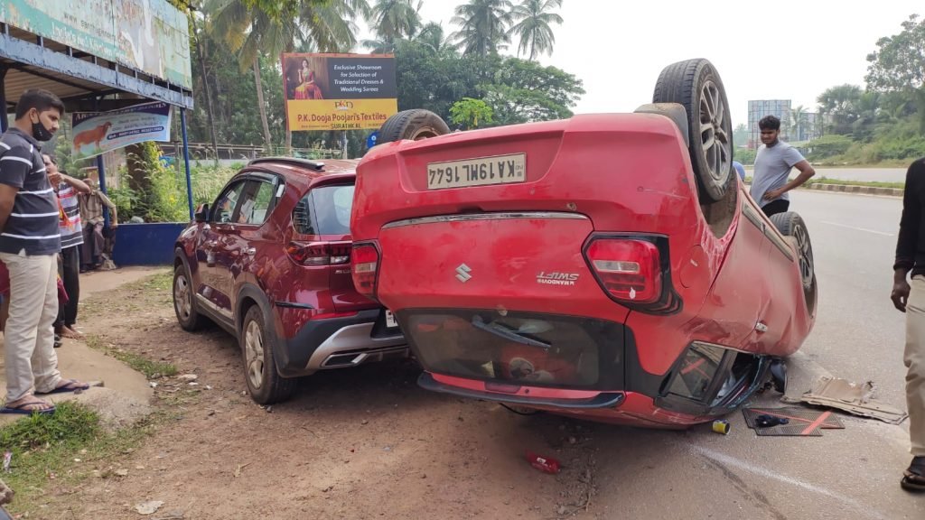 ಉಡುಪಿಯಿಂದ ಮಂಗಳೂರು ಕಡೆಗೆ ಮಾರುತಿ ಸ್ವಿಫ್ಟ್ ಕಾರಿನಲ್ಲಿ ತೆರಳುತ್ತಿದ್ದ ಮುಸ್ತಫ ಎಂಬುವವರು ಪಾವಂಜೆ ದೇವಸ್ಥಾನದ ಮುಂದಿನ ಹೆದ್ದಾರಿಯಲ್ಲಿ ಚಲಿಸುತ್ತಿದ್ದಂತೆ ಮುಂದಿನ ಟಯರ್ ಸ್ಪೋಟಗೊಂಡ ಪರಿಣಾಮ ಚಾಲಕನ ನಿಯಂತ್ರಣಕ್ಕೆ ಬಾರದ ಕಾರು ಮಗುಚಿ ಬಿದ್ದು ಪಕ್ಕದ ರಸ್ತೆ ಬದಿಯಲ್ಲಿ ಪಾರ್ಕ್ ಮಾಡಿದ್ದ ಇನ್ನೊಂದು ಕಾರಿಗೆ ಗುದ್ದಿದೆ