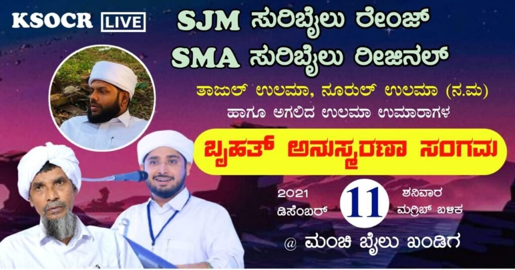 ಸುರಿಬೈಲು ರೀಜನಲ್ ವತಿಯಿಂದ ಇಂದು ಮಗ್ರಿಬ್ ನಮಾಝ್ ಬಳಿಕ ಖಂಡಿಗ,ಮಂಚಿಬೈಲಿನಲ್ಲಿ ತಾಜುಲ್ ಉಲಮಾ ಹಾಗೂ ಅಗಲಿದ ನಾಯಕರ ಅನುಸ್ಮರಣೆ ಸಂಗಮ ನಡೆಯಲಿದೆ.