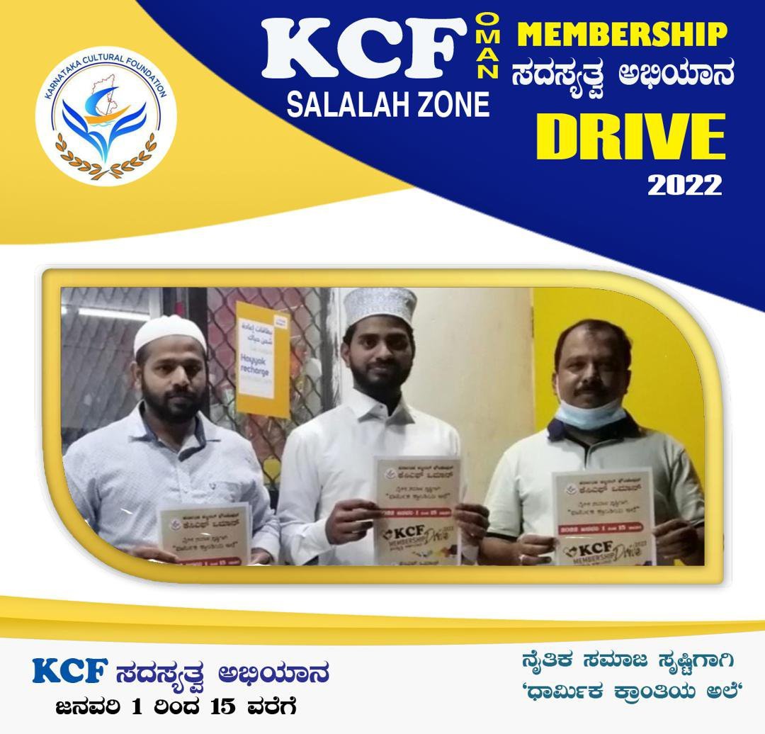 ಸಿದ್ದೀಕ್ ಮಾಂಬ್ಲಿ ಸುಳ್ಯ ,ಇಕ್ಬಾಲ್ ಎರ್ಮಾಳ್, ಇಕ್ಬಾಲ್ ಮದನಿ ಚೆನ್ನಾರ್, ಉಪಸ್ಥಿತರಿದ್ದರು. ಕೆಸಿಎಫ್ ಸಲಾಲ ಝೋನ್ನಲ್ಲಿ ಅಧ್ಯಕ್ಷ ಲತೀಫ್ ಸುಳ್ಯ ಇವರು ಸದಸ್ಯತ್ವ ಅಭಿಯಾನಕ್ಕೆ ಚಾಲನೆ ನೀಡಿದರು. ಈ ಸಂಧರ್ಭದಲ್ಲಿ ಕಮಾಲ್ ಸುಳ್ಯ ,ಶರೀಫ್ ಮಿಸ್ಬಾಯಿ ಸುಳ್ಯ ಉಪಸ್ಥಿತರಿದ್ದರು. ಹಾಗೂ ನಿಝ್ವ ಝೋನ್ ನಲ್ಲಿ ಹುಸೈನ್ ತೀರ್ಥಹಳ್ಳಿ ಇವರು ಕೆಸಿಎಫ್ ಸದಸ್ಯತ್ವ ಅಭಿಯಾನಕ್ಕೆ ಚಾಲನೆ ನೀಡಿದರು.