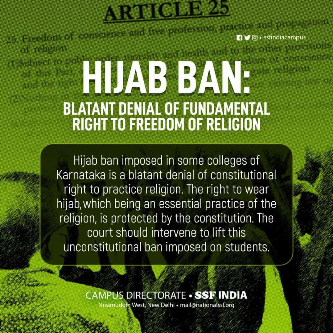 ಸಂವಿಧಾನಬದ್ಧ ಹಕ್ಕುಗಳು ಇರುವಾಗ ಇಲ್ಲಿ ಆಯ್ಕೆಯ ಪ್ರಶ್ನೆ ಉದ್ಭವಿಸುವುದಿಲ್ಲ. ಹಿಜಾಬ್ ಮುಖ್ಯವೋ? ಶಿಕ್ಷಣ ಮುಖ್ಯವೋ? ಎನ್ನುವ ಪ್ರಶ್ನೆಗಳು ಅಲ್ಪಸಂಖ್ಯಾತ ಸಮುದಾಯವನ್ನು ಇನ್ನಷ್ಟು ದುರ್ಬಲಗೊಳಿಸುವ ತಂತ್ರ ಮಾತ್ರವಲ್ಲದೇ, ಸಮುದಾಯವನ್ನು ಶಿಕ್ಷಣದಿಂದ ವಂಚಿತರನ್ನಾಗಿ ಮಾಡುವ ಕುತಂತ್ರವೂ ಹೌದು.