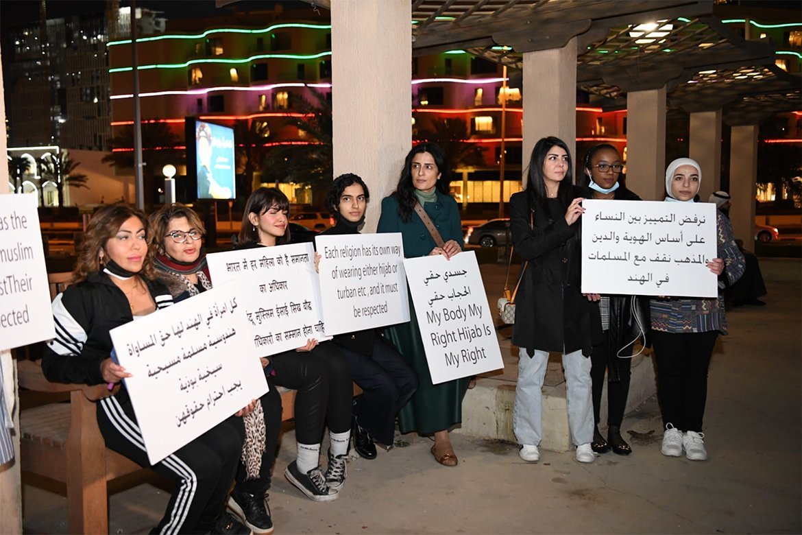 ಕುವೈತ್ ಸಿಟಿ | ಕರ್ನಾಟಕದ ಶಿಕ್ಷಣ ಸಂಸ್ಥೆಗಳಲ್ಲಿ ಶಿರ ವಸ್ತ್ರವನ್ನು ನಿಷೇಧಿಸಿರುವುದನ್ನು ಖಂಡಿಸಿ ಕುವೈತ್ ನ ಭಾರತೀಯ ರಾಯಭಾರಿ ಕಚೇರಿ ಮುಂಭಾಗದಲ್ಲಿ ಕುವೈತ್ ನ ಸರ್ವ ಧರ್ಮೀಯರು ಒಗ್ಗಟ್ಟಾಗಿ ಪ್ರತಿಭಟನೆ ನಡೆಸಿದರು. ಇಸ್ಲಾಮಿಕ್ ಸಾಂವಿಧಾನಿಕ ಚಳವಳಿಯ (ಹದಾಫ್) ಮಹಿಳೆಯರು ಪ್ರತಿಭಟನೆಯನ್ನು ಆಯೋಜಿಸಿದ್ದರು.