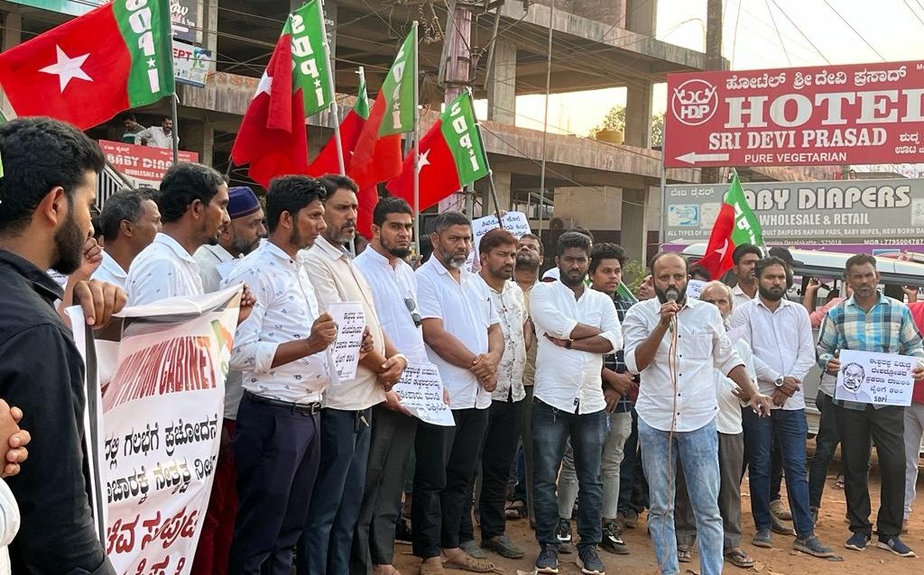 ದೇರಳಕಟ್ಟೆ :ಸೋಶಿಯಲ್ ಡೆಮಾಕ್ರಟಿಕ್ ಪಾರ್ಟಿ ಆಫ್ ಇಂಡಿಯಾ ಮಂಗಳೂರು (ಉಳ್ಳಾಲ) ವಿಧಾನಸಭಾ ಕ್ಷೇತ್ರ ಸಮಿತಿಯ ವತಿಯಿಂದ ಶಿವಮೊಗ್ಗದಲ್ಲಿ ಗಲಭೆಗೆ ಪ್ರಚೋದನೆ ಮತ್ತು ಹಿಂಸಾಚಾರಕ್ಕೆ ನೇತ್ರತ್ವ ನೀಡಿದ ಸಚಿವ ಈಶ್ವರಪ್ಪರನ್ನು ಶಾಸಕ ಸ್ಥಾನದಿಂದ ವಜಾಗೊಳಿಸಲು ಆಗ್ರಹಿಸಿ ಕ್ಷೇತ್ರಾಧ್ಯಕ್ಷರಾದ ಇರ್ಷಾದ್ ಅಜಿನಡ್ಕ ರವರ ನೇತ್ರತ್ವದಲ್ಲಿ ದೇರಳಕಟ್ಟೆಯಲ್ಲಿ ಪ್ರತಿಭಟನೆ ನಡೆಯಿತು.
