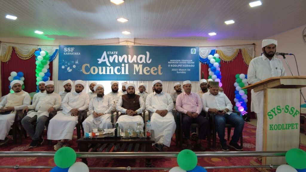 ಕೊಡಗು: ಕರ್ನಾಟಕ ರಾಜ್ಯ ಸುನ್ನೀ ಸ್ಟೂಡೆಂಟ್ಸ್ ಪೆಢರೇಶನ್ ಎಸ್ಸೆಸ್ಸೆಫ್ ರಾಜ್ಯ ವಾರ್ಷಿಕ ಕೌನ್ಸಿಲ್ ಕೊಡಗು ಜಿಲ್ಲೆಯ ಕೊಡ್ಲಿಪೇಟೆಯಲ್ಲಿ ಎಸ್ಸೆಸ್ಸೆಫ್ ರಾಜ್ಯಾಧ್ಯಕ್ಷ ಅಬ್ದುಲ್ ಲತೀಫ್ ಸಅದಿ ಶಿವಮೊಗ್ಗರವರ ಅಧ್ಯಕ್ಷತೆಯಲ್ಲಿ ನಡೆಯಿತು.