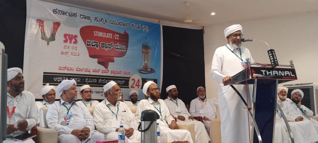 ಅವರು ಮಾರ್ಚ್ 22ರ ಗುರುವಾರದಂದು ಕರ್ನಾಟಕ ರ ಸುನ್ನಿ ಯುವಜನ ಸಂಘ (ರಿ.) ಎಸ್ವೈಎಸ್ ದ.ಕ. ಈಸ್ಟ್ ಜಿಲ್ಲಾ ಸಮಿತಿಯು ಮರ್ಹೂಂ ಜೋಗಿಬೆಟ್ಟು ಆಶಿಖ್ ಫಹದ್ ಫಖ್ರುದ್ದೀನ್ ವೇದಿಕೆ ಜನಪ್ರಿಯ ಗಾರ್ಡನ್ ನೇರಳಕಟ್ಟೆಯಲ್ಲಿ ಸ್ಟಿಮ್ಯುಲೇಟ್22 ಅಂಗವಾಗಿ ಆಯೋಜಿಸಿದ ಜಿಲ್ಲಾ ಕ್ಲಾಸ್ ರೂಂ ಕಾರ್ಯಕ್ರಮದಲ್ಲಿ ಮುಖ್ಯ ತರಗತಿ ನಡೆಸಿ ಮಾತನಾಡಿದರು.