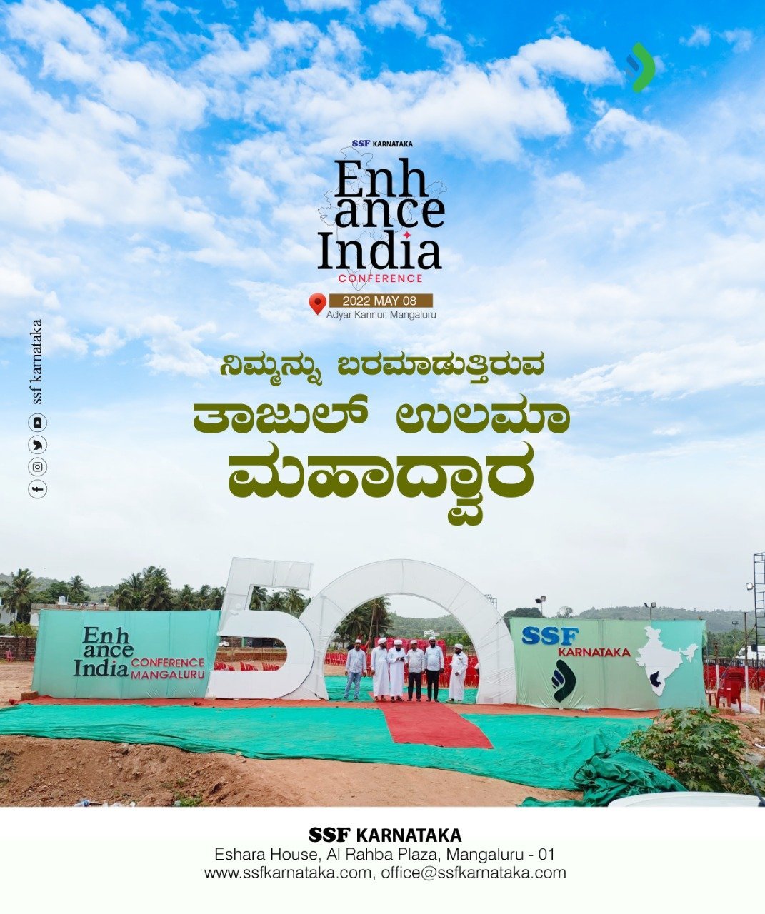 ಮಂಗಳೂರು, ಮೇ.8: ಎಸ್ಸೆಸ್ಸೆಫ್ ಸುವರ್ಣ ಮಹೋತ್ಸವದ ಅಂಗವಾಗಿ ಎನ್ ಹಾನ್ಸ್ ಇಂಡಿಯಾ ಕಾನರೆನ್ಸ್ ಮೇ 8ರಂದು ದೇಶದ 20 ರಾಜ್ಯಗಳಲ್ಲಿ ನಡೆಯಲಿದ್ದು, ಕರ್ನಾಟಕ ರಾಜ್ಯದ ಸಮಾವೇಶ ಮಂಗಳೂರಿನ ಅಡ್ಯಾರ್‌ ಕಣ್ಣೂರು ಮೈದಾನದಲ್ಲಿ ಮೇ 8ರಂದು ಅಪರಾಹ್ನ 3 ಗಂಟೆಗೆ ಜರಗಲಿದೆ.