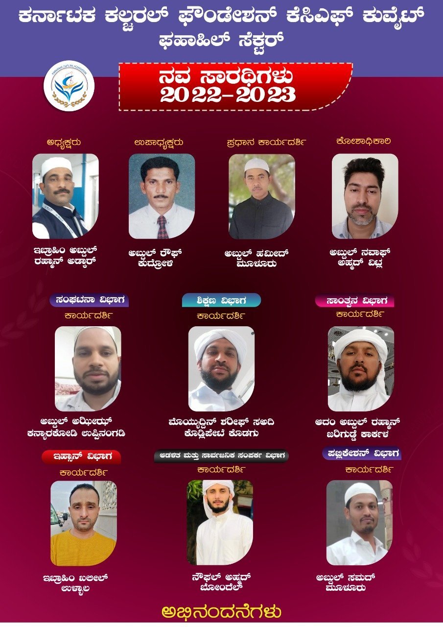ಕರ್ನಾಟಕ ಕಲ್ಬರಲ್ ಫೌಂಡೇಶನ್ ಕುವೈತ್ ಫಾಹೀಲ್ ಸೆಕ್ಟರ್ ಸಮಿತಿಯ ಮಹಾಸಭೆಯು ದಿನಾಂಕ 13/05/2022 ಶುಕ್ರವಾರ ಜುಮಾ ನಮಾಝಿನ ಬಳಿಕ ಫಾಹೀಲ್ ಸೆಕ್ಟರ್ ಆಫೀಸ್ ನಲ್ಲಿ ರಾಷ್ಟ್ರೀಯ ಸಮಿತಿಯ ಸದಸ್ಯರಾದ ಫಾರೂಕ್ ಸಖಾಫಿ ಮುಸ್ಲಿಯಾರ್ ರವರ ಅಧ್ಯಕ್ಷತೆ ಹಾಗು ದುಆ ದೊಂದಿಗೆ ಆರಂಭಗೊಂಡಿತು.