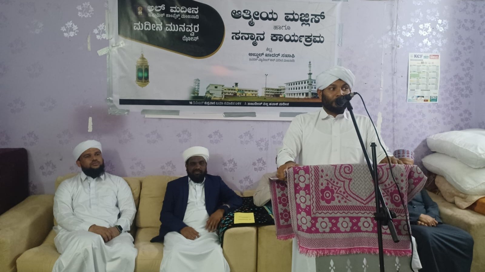 ಅಲ್ ಮದೀನ, ಮದೀನ ಮುನವ್ವರ ಯುನಿಟ್ ಅಧ್ಯಕ್ಷರಾದ ಉಮರ್ ಫಾರೂಕ್ ಮುಸ್ಲಿಯಾರ್ ಅವರು ಕಾರ್ಯಕ್ರಮವನ್ನು ಉದ್ಘಾಟಿಸಿದರು. ಮದೀನ ಮುನವ್ವರ ಝೋನ್ ಅಧ್ಯಕ್ಷರಾದ ಮುಹಮ್ಮದ್ ಮುಸ್ತಫ ಲತೀಫಿ ಕಲ್ಕಟ್ಟ ಅವರು ಕಾರ್ಯಕ್ರಮದ ಅಧ್ಯಕ್ಷತೆಯನ್ನು ವಹಿಸಿದ್ದರು.ಅಲ್ ಮದೀನ ಇಸ್ಲಾಮಿಕ್ ಕಾಂಪ್ಲೆಕ್ಸ್