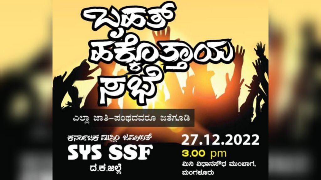 ನ್ಯಾಯ ನೀಡಬೇಕಾದ ಅಧಿಕಾರಿಗಳು ವೃತ್ತಿ ಧರ್ಮ ಪಾಲನೆ ಮಾಡದೆ, ಒಂದು ಸಮುದಾಯವನ್ನು ಗುರಿ ಮಾಡುತ್ತಿರುವುದು ಪ್ರಜಾಪ್ರಭುತ್ವ ವ್ಯವಸ್ಥೆಯಲ್ಲಿ ಪ್ರಜೆಗಳ ಹಕ್ಕನ್ನು ಕಸಿಯುವ ಪ್ರಯತ್ನವಾಗಿದ್ದು,ಈ ವಿಷಯವನ್ನು ಪ್ರತಿಪಾದಿಸಿ ನ್ಯಾಯಕ್ಕಾಗಿ ಸುನ್ನಿ ಸಂಘಟನೆಗಳ ವತಿಯಿಂದ ಹಕ್ಕೊತ್ತಾಯ ಮಾಡುವ ಬೃಹತ್ ಪ್ರತಿಭಟನೆ ಸಭೆ ನಾಳೆ ಮಧ್ಯಾಹ್ನ 3:00 ಗಂಟೆಗೆ ಮಂಗಳೂರಿನಲ್ಲಿ ನಡೆಯಲಿದ್ದು,ಸರ್ವರು ಬಂದು ಭಾಗವಹಿಸಿ ಧ್ವನಿಗೂಡಿಸಬೇಕೆಂದು ಎಸ್ಎಂಎ ಕರ್ನಾಟಕ ರಾಜ್ಯ ಸಮಿತಿ ಪ್ರತಿಭಟನೆಯನ್ವು ಬೆಂಬಲಿಸಲು ಕರೆ ನೀಡಿದೆ.