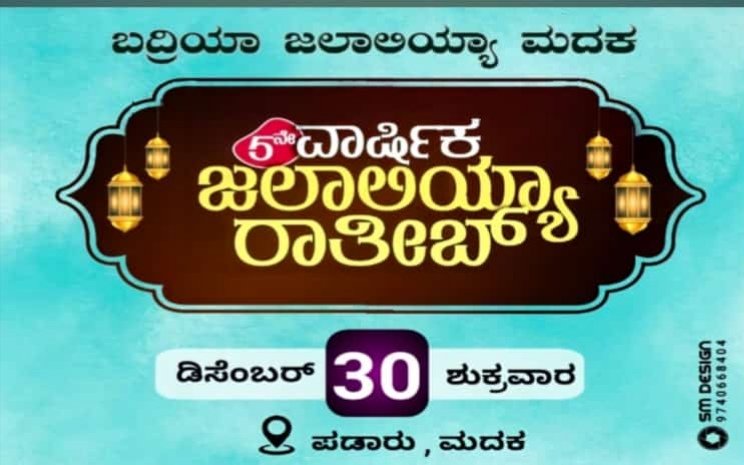 ಹೆಚ್ಚಿನ ಸಂಖ್ಯೆಯಲ್ಲಿ ಭಾಗವಹಿಸಬೇಕಾಗಿ ಪತ್ರಿಕಾ ಪ್ರಕಟಣೆಯಲ್ಲಿ ಕಾರ್ಯಕ್ರಮದ ಚೇರ್ ಮ್ಯಾನ್ ಸೈಯದ್ ಶಿಹಾಬುದ್ದೀನ್ ತಂಙಳ್ ಮದಕ ತಿಳಿಸಿದ್ದಾರೆ.