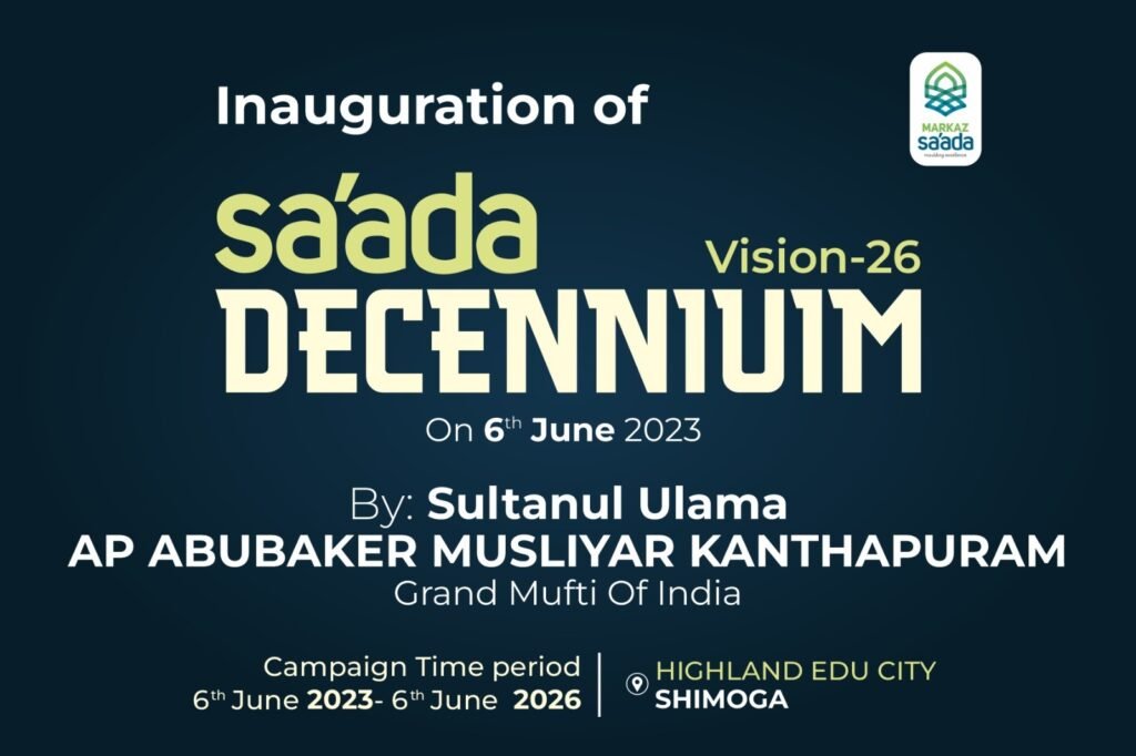 2023 ಜೂನ್ ಆರರಿಂದ 2026 ಜೂನ್ ಆರರ ತನಕ ಮೂರು ವರ್ಷಗಳ ಕಾಲ ನಡೆಯುವ ಈ ಅಭಿಯಾನಕ್ಕೆ ನಾಳೆ ಸುಲ್ತಾನುಲ್ ಉಲಮಾ ಎ.ಪಿ.ಉಸ್ತಾದರು ಮರ್ಕಝ್‌ನಲ್ಲಿ ಸಾಂಕೇತಿಕವಾಗಿ ಚಾಲನೆ‌ ನೀಡಲಿದ್ದಾರೆ.