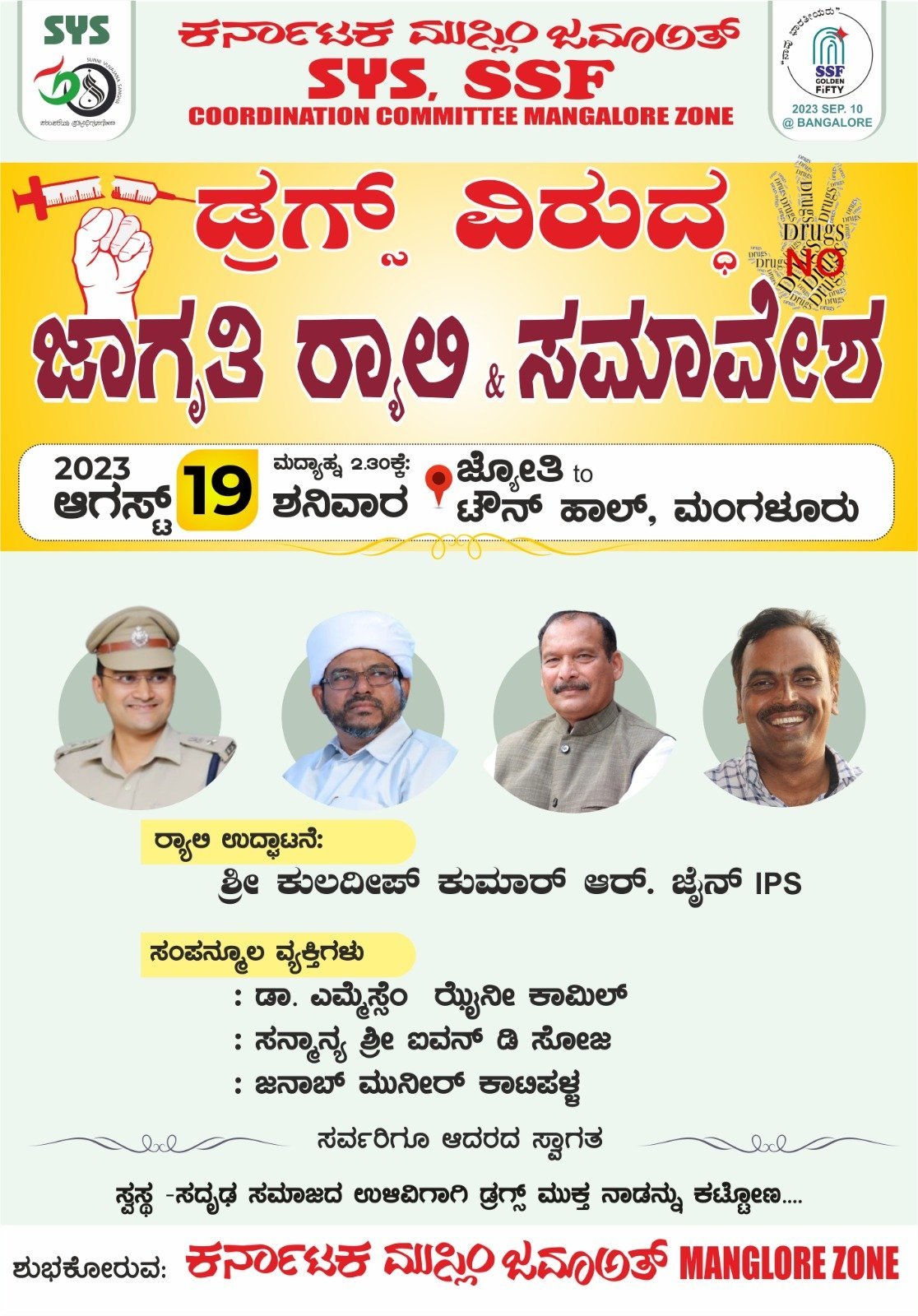 2023 ಆಗಸ್ಟ್ 19 ಶನಿವಾರ 2.30 PM ಜ್ಯೋತಿ ಸರ್ಕಲ್ ನಿಂದ ಪುರಭವನದವರೆಗೆ