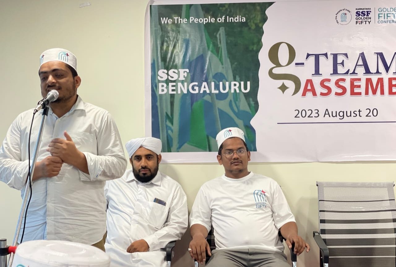 ಬೆಂಗಳೂರು: ಸೆಪ್ಟೆಂಬರ್ 10 ರಂದು ಬೆಂಗಳೂರಿನ ಅರಮನೆ ಮೈದಾನದಲ್ಲಿ ನಡೆಯಲಿರುವ SSF ಗೋಲ್ಡನ್ ಫಿಫ್ಟಿ ಸಮಾವೇಶದ ಪ್ರಚಾರಾರ್ಥವಾಗಿ ಜಿ-ಟೀಮ್ ಕಾರ್ಯಕರ್ತರ ಕಾಲ್ನಡಿಗೆ ಜಾಥಾ ಆರ್.ಟಿ ನಗರದ ಬೀದಿಯಲ್ಲಿ ನಡಿಯಿತು.