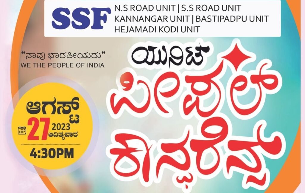 ಪಡುಬಿದ್ರಿ : ಆ 26: ಎಸ್ಸೆಸ್ಸೆಫ್ ಗೋಲ್ಡನ್ ಫಿಫ್ಟಿಯ ಭಾಗವಾಗಿ ರಾಜ್ಯದಾದ್ಯಂತ ನಡೆಯುತ್ತಿರುವ ಪೀಪಲ್ಸ್ ಕಾನ್ಫರೆನ್ಸ್ ಎಸ್ಸೆಸ್ಸೆಫ್ ಎನ್.ಎಸ್ ರೋಡ್, ಎಸ್.ಎಸ್ ರೋಡ್, ಬಸ್ತಿಪಡ್ಪು, ಕಣ್ಣಂಗಾರ್, ಹೆಜಮಾಡಿ ಕೋಡಿ ಶಾಖೆಗಳ ಜಂಟಿಯಲ್ಲಿ ಆಗಸ್ಟ್ 27 ರಂದು ಸಂಜೆ 4.30 ಕ್ಕೆ ಹೆಜಮಾಡಿ ಜಂಕ್ಷನಲ್ಲಿ ನಡೆಯಲಿದೆ.
