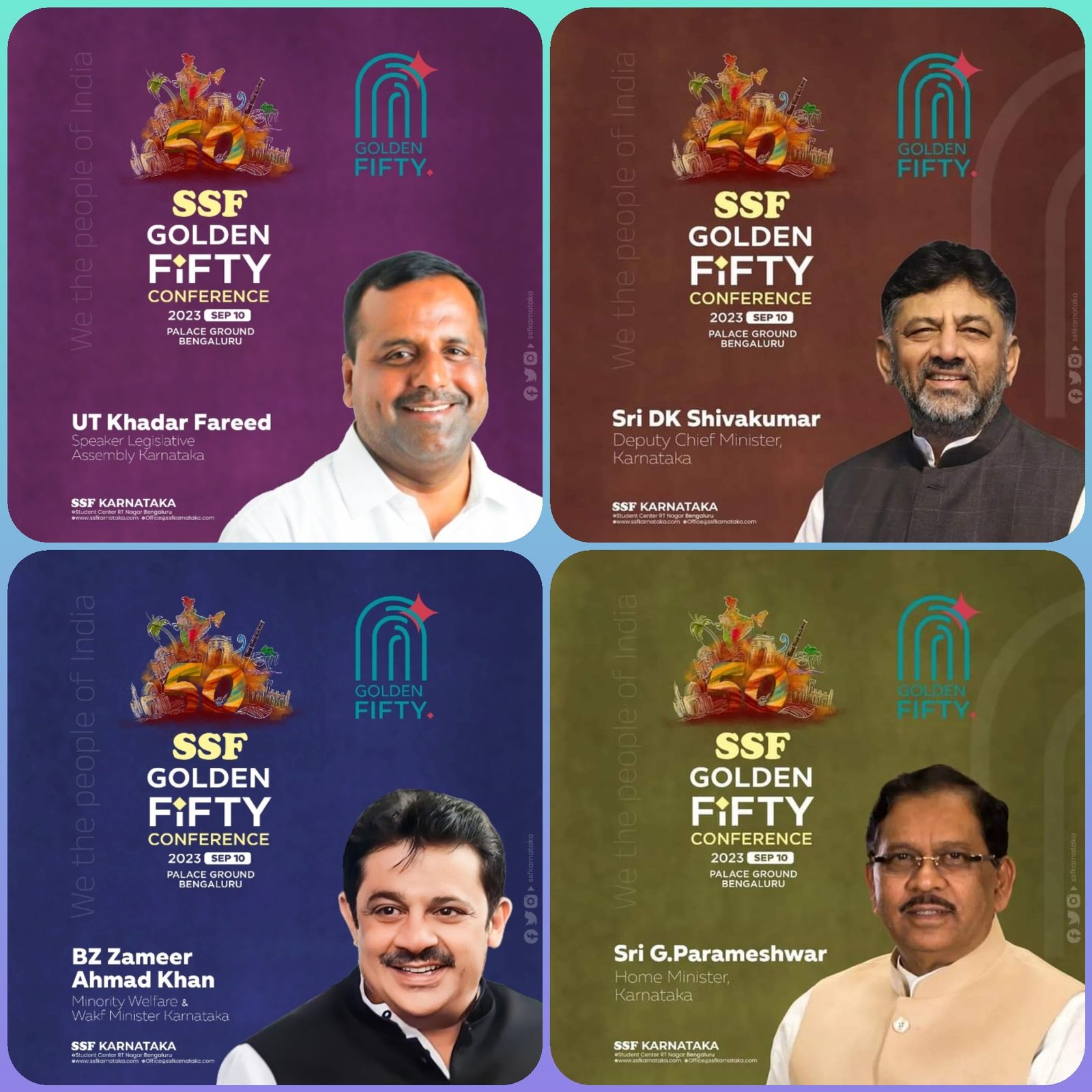 ಬೆಂಗಳೂರು: ಸುನ್ನೀ ಸ್ಟೂಡೆಂಟ್ ಫೆಡರೇಶನ್ (ಎಸ್ಸೆಸ್ಸೆಫ್) ಇದರ ಐವತ್ತನೇ ವರ್ಷಾಚರಣೆಯ ಪ್ರಯುಕ್ತ ಗೋಲ್ಡನ್ ಫಿಫ್ಟಿ ಮಹಾ ಸಮ್ಮೇಳನ ಹಾಗೂ ಎಸ್ಸೆಸ್ಸೆಫ್ ರಾಷ್ಟ್ರೀಯ ಸಮಿತಿಯು ನಡೆಸುತ್ತಿರುವ ಕಾಶ್ಮೀರದಿಂದ ಆರಂಭಗೊಂಡಿರುವ ಸಂವಿಧಾನ ಯಾತ್ರೆಯ ಸಮಾರೋಪ ಸಮಾರಂಭ ಸೆಪ್ಟೆಂಬರ್ 10 ರವಿವಾರದಂದು ಬೆಂಗಳೂರು ಮಹಾನಗರದ ಶ್ರೀ ಕೃಷ್ಣ ವಿಹಾರ ಅರಮನೆ ಮೈದಾನದಲ್ಲಿ ನಡೆಯಲಿದೆ.
