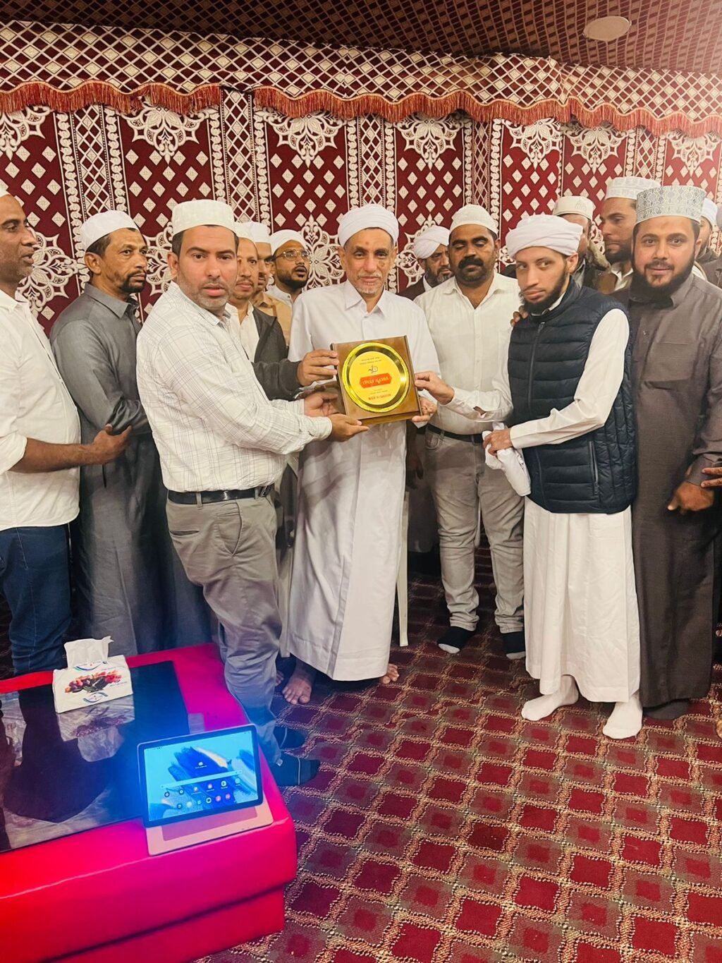 ತಾಜುಲ್ ಉಲಮಾ ನಾಲೆಡ್ಜ್ ಪಾರ್ಕ್ ಎಟ್ಟಿಕುಳಂ ಕೇರಳ ಇದರ ಪ್ರಚಾರಾರ್ಥವಾಗಿ ಸೌದಿ ಪರ್ಯಟನೆಯಲ್ಲಿರುವ ದ.ಕ ಜಿಲ್ಲಾ ಸಂಯುಕ್ತ ಜಮಾಅತ್ ಖಾಝಿ ಸೈಯದ್ ಫಝಲ್ ಕೋಯಮ್ಮ ತಂಙಳ್ ಕೂರತ್ ರವರನ್ನು ಡಿಸೆಂಬರ್ 14 ಗುರುವಾರ ರಾತ್ರಿ ಬುರೈದ ಶಾಲಿಯಾತ್ ಜಂರ ಆಡಿಟೋರಿಯಂನಲ್ಲಿ ನಡೆದ ಸಮಾರಂಭದಲ್ಲಿ ಗೌರವ ಸ್ಮರಣಿಕೆ ನೀಡಿ ಗೌರವಿಸಲಾಯಿತು