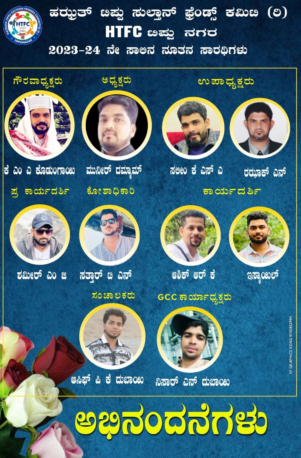 ಧಾರ್ಮಿಕ, ಸಾಮಾಜಿಕ ಸೇವಾರಂಗದಲ್ಲಿ ಜನಪ್ರಿಯವಾಗಿರುವ ಪ್ರಸ್ತುತ HTFC ಸಂಘಟನೆಯ ಮಹಾಸಭೆಯು ಡಿಸೆಂಬರ್ 15,16 ಮತ್ತು 17ರಂದು ನಡೆದು 2024ರ ಸಾಲಿನ ನೂತನ ಪದಾಧಿಕಾರಿಗಳನ್ನು ಆರಿಸಲಾಯಿತು.