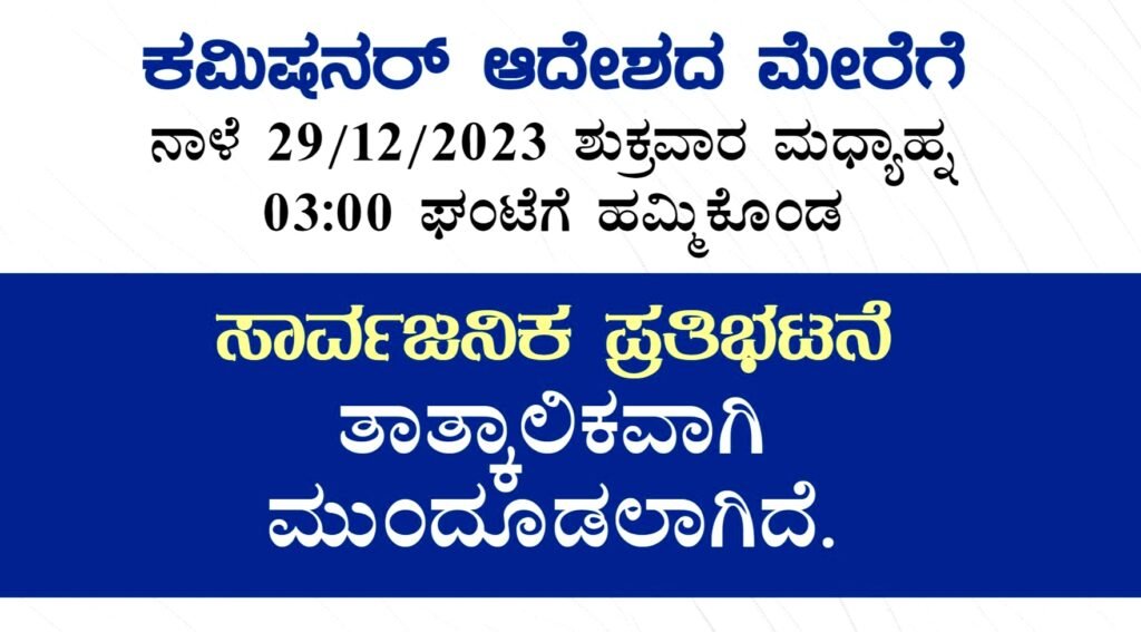 ಸಾರ್ವಜನಿಕರ ಗಮನಕ್ಕೆ- ಇಂದಿನ ಪ್ರತಿಭಟನೆ ಮುಂದೂಡಲಾಗಿದೆ