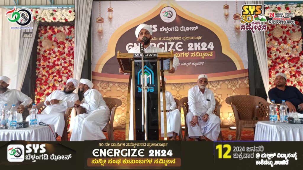 ಬೆಳ್ತಂಗಡಿ: SჄS ಕರ್ನಾಟಕ ರಾಜ್ಯ ಸಮಿತಿಯ 30 ನೇ ವಾರ್ಷಿಕ ಸಮ್ಮೇಳನ ದ ಪ್ರಚಾರಾರ್ಥ SჄS ಬೆಳ್ತಂಗಡಿ ಝೋನ್ ನಡೆಸಿದ ENARGIZE-2K24 ಸುನ್ನೀ ಸಂಘ ಕುಟುಂಬದ ಸಮ್ಮಿಲನ ಕಾರ್ಯಕ್ರಮ ದಿನಾಂಕ 2024 ಜನವರಿ 12 ರಂದು ಮಲ್ಜಅ್ ವಿದ್ಯಾಸಂಸ್ಥೆ ಬಹಳ ಯಶಸ್ವಿಯಾಗಿ ನಡೆಯಿತು.