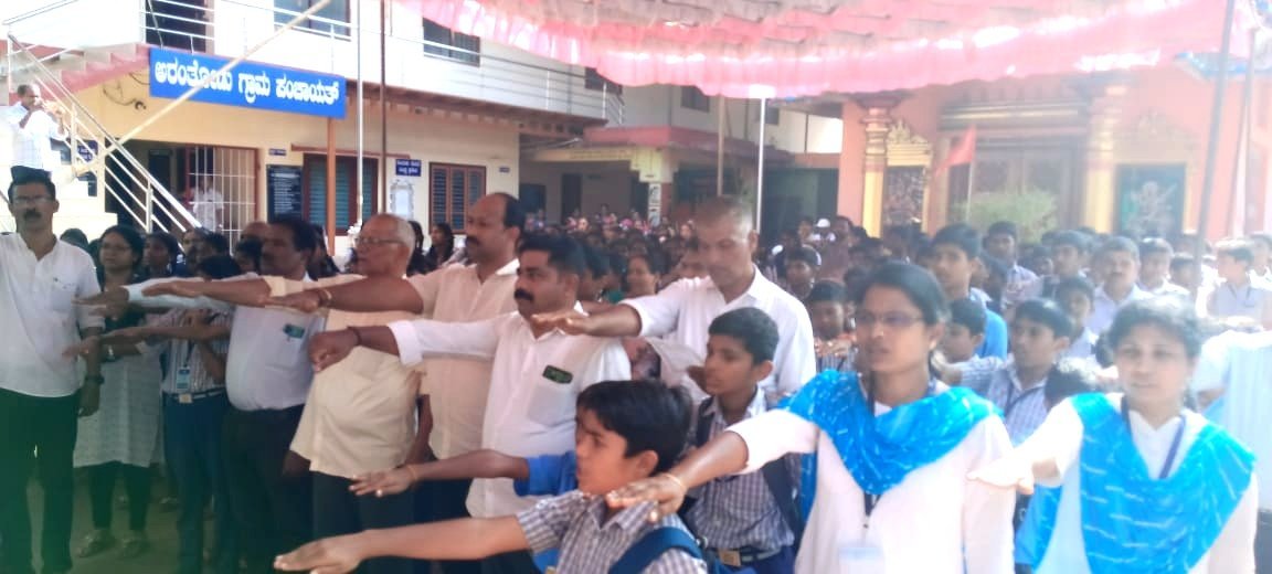 ಅರಂತೋಡು: ಸಂವಿಧಾನದ 75 ನೇ ವರ್ಷಾಚರಣೆ ಪ್ರಯುಕ್ತ ಜಿಲ್ಲೆಯಾಧ್ಯಂತ ಸಂಚರಿಸುತ್ತಿರುವ ಸಂವಿಧಾನ ಜಾಗೃತಿ ಜಾಥಾವು ಅರಂತೋಡು ಗ್ರಾಮ ಪಂಚಾಯತ್ ವ್ಯಾಪ್ತಿಗೆ ಆಗಮಿಸಿದಾಗ ಗ್ರಾಮದ ಆರ್ಲಡ್ಕದಲ್ಲಿ ಗ್ರಾಮ ಪಂಚಾಯತ್ ವತಿಯಿಂದ ಸ್ವಾಗತಿಸಿ ವಾಹನ ಜಾಥಾದೊಂದಿಗೆ ಬರಮಾಡಿಕೊಳ್ಳಲಾಯಿತು.ತೆಕ್ಕಿಲ್ ಸಮುದಾಯ ಭವನದಿಂದ ಪಂಚಾಯತ್ ವಠಾರದವರೆಗೆ ನಾಸಿಕ್ ಬ್ಯಾಂಡ್, ಸ್ಕೌಟ್, ಶಾಲಾ ವಿಧಾರ್ಥಿಗಳು, ಸಂಘ ಸಂಸ್ಥೆಗಳ ಪಧಾಧಿಕಾರಿಗಳು, ವಾಹನ ಮಾಲಕರು ಹಾಗೂ ಸಾರ್ವಜನಿಕರೊಂದಿಗೆ ಅರಂತೋಡು ಪೇಟೆಯ ಮೂಲಕ ಮೆರವಣಿಗೆಯೊಂದಿಗೆ ಆಗಮಿಸಿ ಪಂಚಾಯತ್ ವಠಾರದಲ್ಲಿ ಕಾರ್ಯಕ್ರಮ ನಡೆಸಲಾಯಿತು.