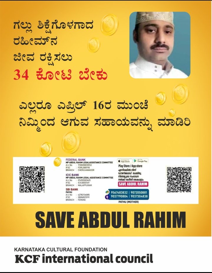 ರಹೀಮ್ ವಿಮೋಚನಾ ಶುಲ್ಕ ಪಾವತಿ ಗಡುವು ವಿಸ್ತರಣೆಗೆ ಮನವಿ : ಅಧಿಕಾರಿಗಳು ಹೇಳಿದ್ದೇನು?