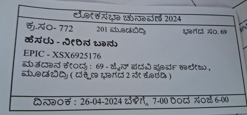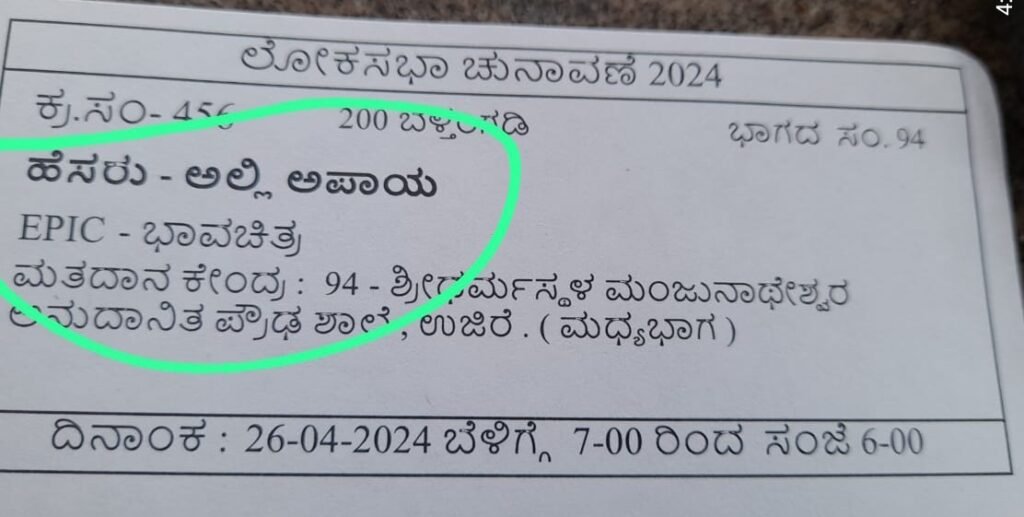 ೈರಲ್ ಆಗುತ್ತಿರುವ ವೋಟರ್ ಸ್ಲಿಪ್ ಗಳ ಪೈಕಿ ಅತ್ಯಂತ ಹೆಚ್ಚು ಅಪಹಾಸ್ಯಕ್ಕೀಡಾದುದು; ಬೆಳ್ತಂಗಡಿ ತಾಲೂಕಿನ ಮತದಾರನೊಬ್ಬನ ಹೆಸರು ; ‘ಅಲ್ಲಿ ಅಪಾಯ’ ಎಂದು ನಮೂದಾಗಿರುವ ಸ್ಲಿಪ್.
