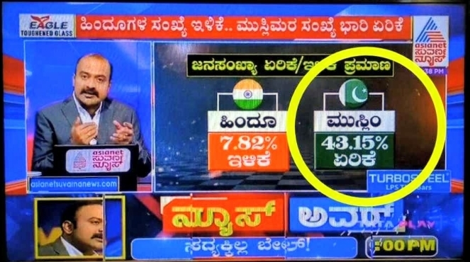 ಏತನ್ಮಧ್ಯೆ, ಮುಸ್ಲಿಂ ಜನಸಂಖ್ಯೆ ತೋರಿಸಲು ಸುವರ್ಣ ನ್ಯೂಸ್ ಎಂಬ ಕನ್ನಡ ಸುದ್ದಿ ವಾಹಿನಿಯೊಂದು ಪಾಕಿಸ್ತಾನ ಧ್ವಜದ ಗ್ರಾಫಿಕ್ಸ್ ಬಳಸಿದ್ದು, ಭಾರೀ ಜನಾಕ್ರೋಶಕ್ಕೆ ಕಾರಣವಾಗಿದ್ದು, ಸುವರ್ಣ ಮತ್ತು ನಿರ್ವಾಹಕ ಅಜಿತ್ ಹನುಮಕ್ಕನವರ್ ವಿರುದ್ಧ ದೇಶದ್ರೋಹ ಪ್ರಕರಣ ದಾಖಲಿಸುವಂತೆ ಆಗ್ರಹಿಸಲಾಗಿದೆ.