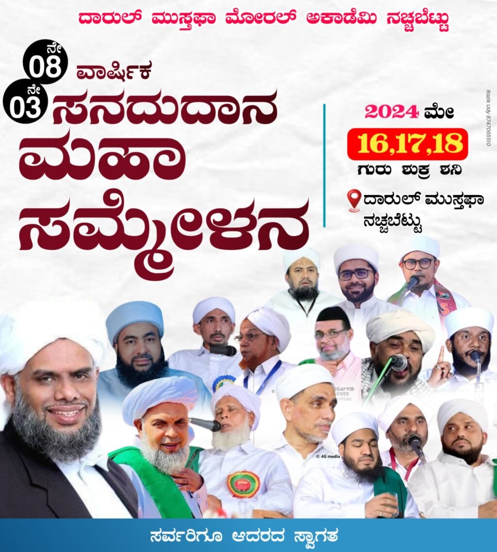 ಅದರ ನಡುವೆ ದರ್ಸ್ ಕಲಿಸಲು, ಗ್ರಂಥಗಳ ಅಧ್ಯಯನ, ಸಂಘಟನೆ ಚಟುವಟಿಕೆ, ತನ್ನತ್ತ ಬರುವ ನೂರಾರು ಜನರ ಧಾರ್ಮಿಕ ಸಮಸ್ಯೆ ಪರಿಹಾರದ ಹೊರೆಯನ್ನೂ ನಿರ್ವಹಿಸಿದರು. ಉಸ್ತಾದರ ಏಕಾಂತ ಹೋರಾಟದ ಫಲವಾಗಿ ನಚ್ಚಬೆಟ್ಟಿವಿನಲ್ಲಿ ತಲೆಯೆತ್ತಿ ನಿಂತ ದಾರುಲ್ ಮುಸ್ತಫಾ ಮೋರಲ್ ಅಕಾಡೆಮಿ ರಾಜ ಗಾಂಭೀರ್ಯ ದಿಂದ ಎಂಟನೇ ವಾರ್ಷಿಕೋತ್ಸವ ಆಚರಿಸಲು ಸನ್ನದ್ಧವಾಗಿ ನಿಂತಿದೆ. ಸುಲ್ತಾನಿಗಳ ಸಹಿತ ನೂರಾರು ಪುರ್ಖಾನಿ ಬಿರುದು ದಾರಿಗಳು ಸನದ್ ಪಡೆಯಲು ಸಿದ್ಧರಾಗಿದ್ದಾರೆ. ಶೈಖುನಾ ಸುಲ್ತಾನುಲ್ ಉಲಮಾ, ಶೈಖುನಾ ಪೆರೋಡ್ ಉಸ್ತಾದರಂತಹ ಅತಿರಥ ಮಹಾರಥರ ಸ್ಪರ್ಶ ದಿಂದ ಪುನೀತ ಗೊಂಡಿರುವ ನಚ್ಚಬೆಟ್ಟು ವಿನ ಮಣ್ಣು ಸಯ್ಯಿದ್ ಖಲೀಲ್ ತಂಙಳ್ ಕಡಲುಂಡಿ, ಸಯ್ಯಿದ್ ಕೂರ ತಂಙಳ್ ಸಹಿತ ಹಲವು ಸಾದಾತುಗಳಿಂದ,ಉಲಮಾಗಳಿಂದ ಅದೃಷ್ಟಗೊಳ್ಳಲು ಮತ್ತೊಮ್ಮೆ ಸಜ್ಜಾಗಿದೆ. ಈ ಅವಿಸ್ಮರಣೀಯ ಕ್ಷಣಗಳಲ್ಲಿ ನೀವೂ ಭಾಗಿಯಾಗಿರಿ. ನಚ್ಚಬೆಟ್ಟು ವಿನ ಅನುಗ್ರಹೀತ ಮಣ್ಣು ಈ ಸಮಾವೇಶಕ್ಕಾಗಿ ನಿಮ್ಮನ್ನು ಕರೆಯುತ್ತಿದೆ.