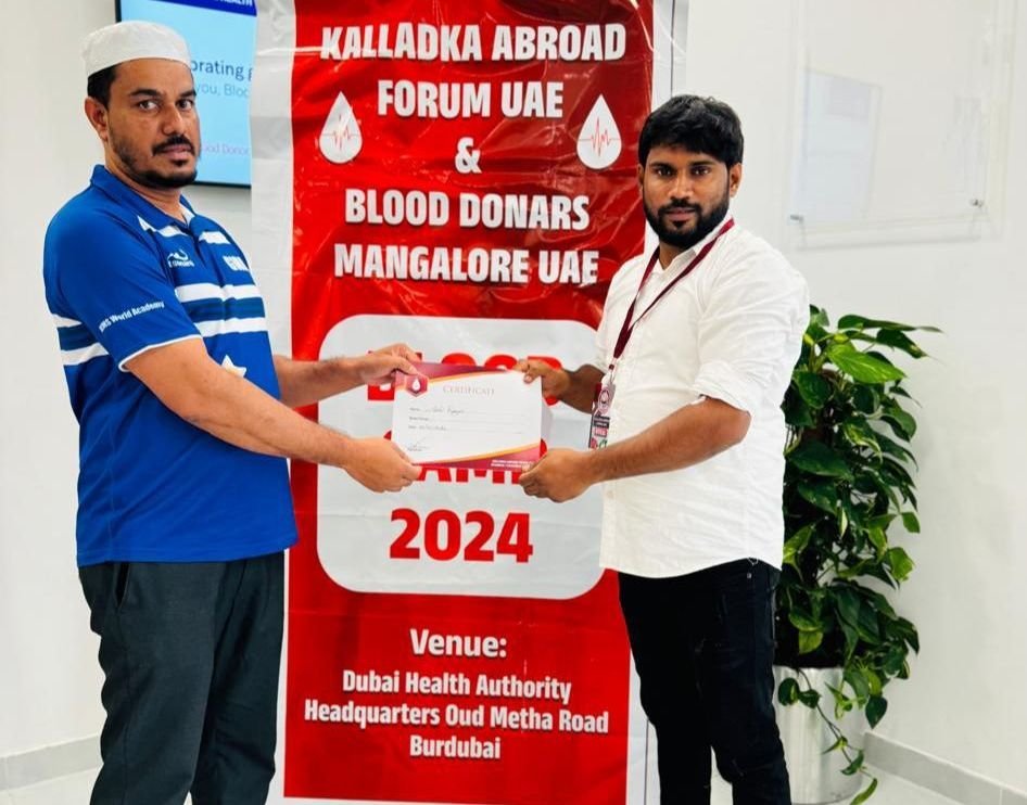 ದುಬೈ : ಕಲ್ಲಡ್ಕ ಅನಿವಾಸಿ ಮಿತ್ರರ ಆಶಾಕಿರಣವಾದ ಕಲ್ಲಡ್ಕ ಅಬ್ರಾಡ್ ಫಾರಂ ಯುಎಇ ಆಶ್ರಯದಲ್ಲಿ ಬ್ಲಡ್ ಡೋನರ್ಸ್ ಮಂಗಳೂರು ಇದರ ಜಂಟಿಯಾಗಿ ಬೃಹತ್ ಯಶಸ್ವಿ ರಕ್ತದಾನ ಶಿಬಿರವು ರಕ್ತ ನಿಧಿ ಕೇಂದ್ರ ಹೆಡ್ ಕ್ವಾಟ್ರಸ್ ದುಬೈಯಲ್ಲಿ ನಡೆಯಿತು…ರಕ್ತದಾನ ಶಿಬಿರದಲ್ಲಿ ಹಲವಾರು ರಕ್ತದಾನಿಗಳು ರಕ್ತದಾನ ಮಾಡಿ ಜೀವದಾನಿಯಾದರು ರಕ್ತದಾನ ಮಾಡಿದ ದಾನಿಗಳಿಗೆ ಕಲ್ಲಡ್ಕ ಅಬ್ರಾಡ್ ಫಾರಂ ಯುಎಇ ಪ್ರಮಾಣ ಪತ್ರ ನೀಡಿ ಗೌರವಿಸಲಾಯಿತು..