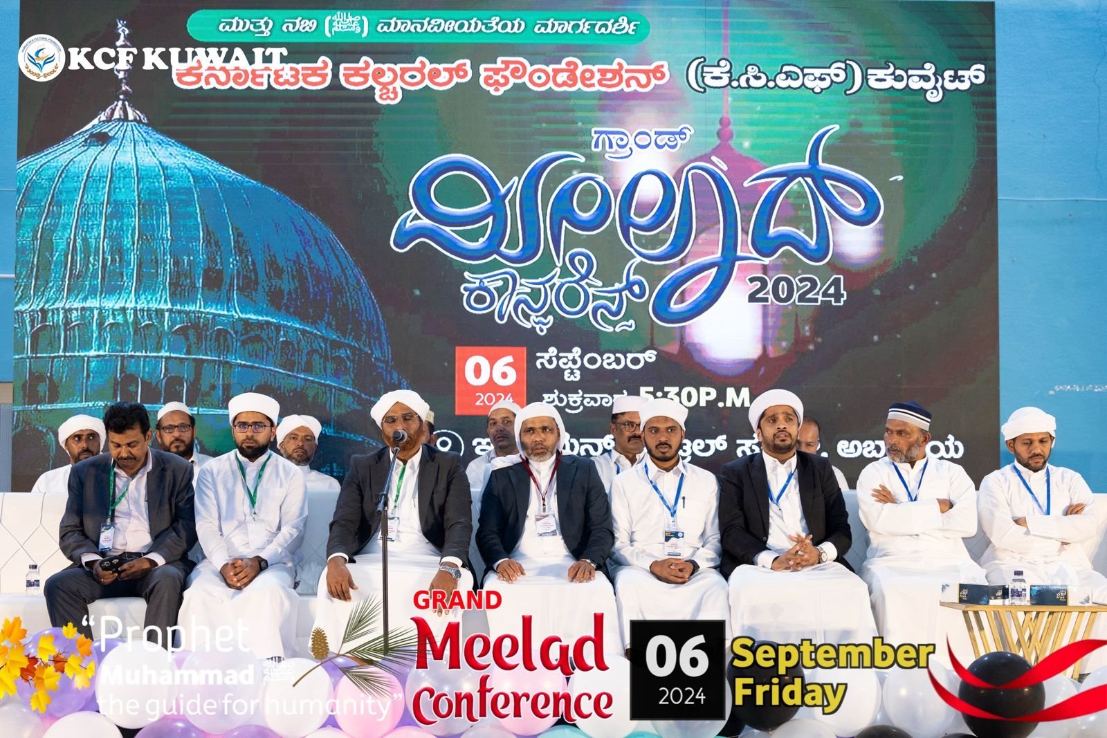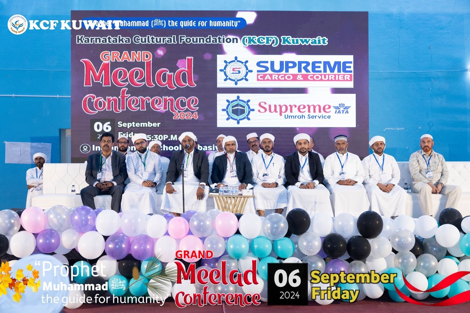 ಕುವೈತ್ ಸಿಟಿ : ಮುತ್ತು ನಬಿ (ﷺ) ಮಾನವೀಯತೆಯ ಮಾರ್ಗದರ್ಶಿ ಎಂಬ ಘೋಷ ವಾಕ್ಯದೊಂದಿಗೆ ಗ್ರ್ಯಾಂಡ್ ಮೀಲಾದ್ ಕಾನ್ಫರೆನ್ಸ್ ದಿನಾಂಕ ಸೆಪ್ಟೆಂಬರ್ 06 ಶುಕ್ರವಾರ 5:30pm ಸರಿಯಾಗಿ ಅಬ್ಬಾಸಿಯ ಸೆಂಟ್ರಲ್ ಸ್ಕೂಲ್ ನಲ್ಲಿ ಕೆಸಿಎಫ್ ಕುವೈಟ್ ರಾಷ್ಟ್ರೀಯ ಶಿಕ್ಷಣ ವಿಭಾಗದ ಅಧ್ಯಕ್ಷರಾದ ಬಹು ಬಾದಾಷ ಸಖಾಫಿ ಹಾಗೂ ಕೆಸಿಎಫ್ ಕುವೈಟ್ ರಾಷ್ಟ್ರೀಯ ಪ್ರಚಾರ ವಿಭಾಗದ ಅಧ್ಯಕ್ಷರಾದ ಸಾಹುಲ್ ಹಮೀದ್ ಸಹದಿ ಝುಹ್ರಿ ಹಾಗೂ ಕೆಸಿಎಫ್ ಕುವೈಟ್ ಉಲಮಾ, ಉಮರಾ ನಾಯಕರ ಉಪಸ್ಥಿತಿಯಲ್ಲಿ ಮೌಲೂದ್ ಪರಾಯಣದೊಂದಿಗೆ ಆರಂಭವಾಯಿತು.