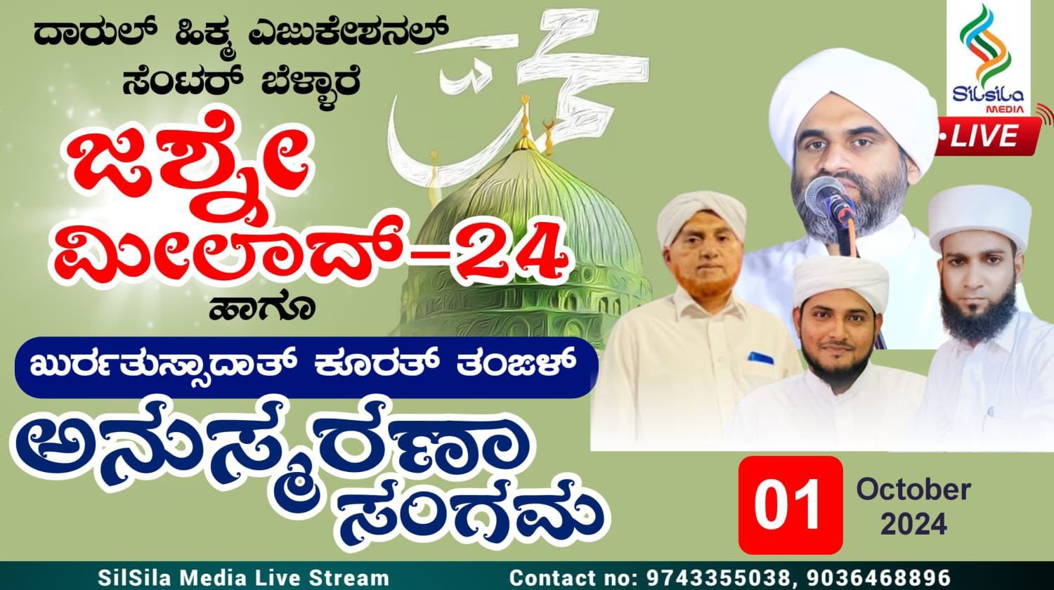 ಅಕ್ಟೋಬರ್ 01 ಮತ್ತು 02 ಕ್ಕೆ ದಾರುಲ್ ಹಿಕ್ಮ ಎಜುಕೇಷನ್ ಸೆಂಟರ್ ಬೆಳ್ಳಾರೆ ಇದರ ಆಶ್ರಯದಲ್ಲಿ ನಡೆಯಲಿರುವ ಜಶ್ನೆ ಮದೀನಾ ಮೀಲಾದ್ ಕಾರ್ಯಕ್ರಮ ಮತ್ತು ಕೂರತ್ ತಂಗಳ್ ಅನುಸ್ಮರಣಾ ಕಾರ್ಯಕ್ರಮಕ್ಕೆ ದಾರುಲ್ ಹಿಕ್ಮ ಕ್ಯಾಂಪಸ್ ಮತ್ತು ಪರಿಸರ ಸಂಪೂರ್ಣವಾಗಿ ಸಜ್ಜುಗೊಂಡಿದೆ.