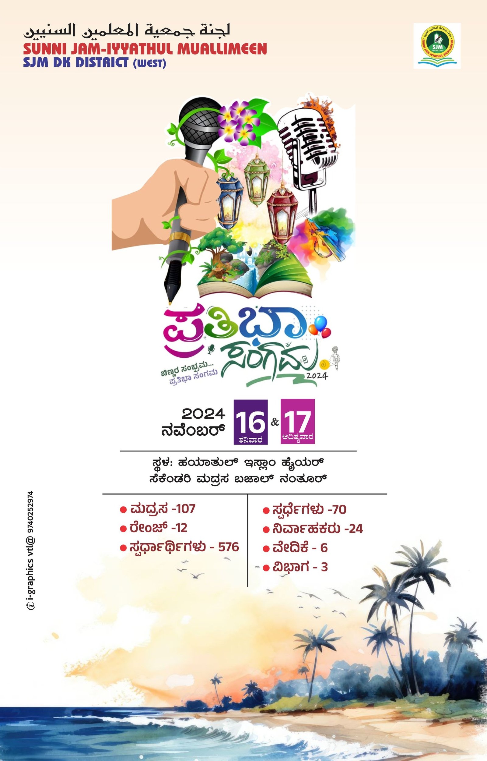 12 ರೇoಜ್ ಗಳಿಂದ ಸರಿ ಸುಮಾರು 107 ಮದ್ರಸ ಗಳ 600 ಕ್ಕೂ ಮಿಕ್ಕ ವಿದ್ಯಾರ್ಥಿಗಳು ಭಾಗವಹಿಸಲಿದ್ದು.3 ವಿಭಾಗವಾಗಿ 6 ವೇದಿಕೆಗಳಲ್ಲಿ 70 ಸ್ಪರ್ಧೆಗಳು ನಡೆಯಲಿದೆ.ಕಾರ್ಯಕ್ರಮದಲ್ಲಿ SJM ರಾಜ್ಯ ನಾಯಕರು, SMA ಜಿಲ್ಲಾ ನಾಯಕರು,ಉಲಮಾ ಉಮರಾ,