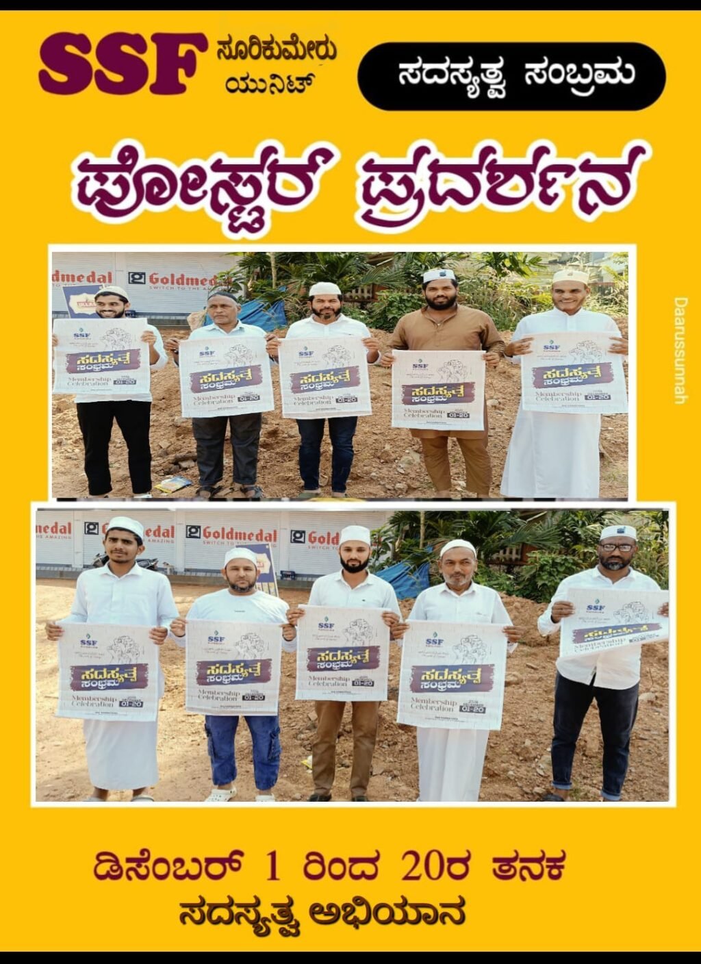 ಮಾಣಿ : ಕರ್ನಾಟಕ ರಾಜ್ಯ ಸುನ್ನೀ ಸ್ಟೂಡೆಂಟ್ ಫೆಡರೇಶನ್ ಎಸ್ಸೆಸ್ಸೆಫ್ ಇದರ ಸದಸ್ಯತ್ವ ಅಭಿಯಾನವು ಡಿಸೆಂಬರ್ 1 ರಿಂದ 20 ರ ತನಕ ನಡೆಯಲಿದ್ದು ಅದರ ಪೋಸ್ಟರ್ ಪ್ರದರ್ಶನ ಕಾರ್ಯಕ್ರಮವು ಸೂರಿಕುಮೇರು ಜಂಕ್ಷನ್ ಬಳಿ ನಡೆಯಿತು.