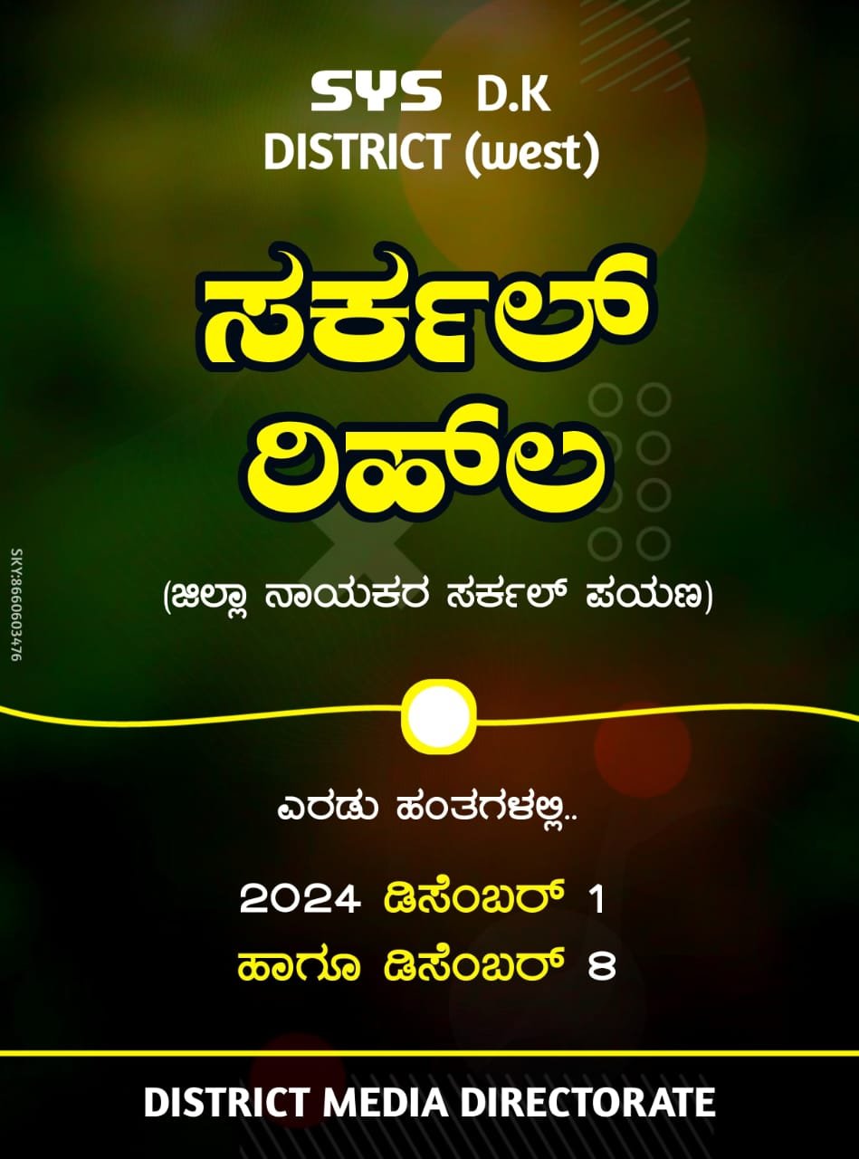 ಎಸ್ವೈಎಸ್ ದಕ್ಷಿಣ ಕನ್ನಡ ವೆಸ್ಟ್ ಜಿಲ್ಲಾ ಸಮಿತಿಯಿಂದ ಘಟಕಗಳನ್ನು ಸಕ್ರಿಯಗೊಳಿಸುವುದರ ಭಾಗವಾಗಿ ‘ಸರ್ಕಲ್ ರಿಹ್ಲ’ ಎಂಬ ಹೆಸರಿನಲ್ಲಿ ಜಿಲ್ಲಾ ನಾಯಕರಿಂದ ಜಿಲ್ಲಾ ವ್ಯಾಪ್ತಿಯ ಸರ್ಕಲ್ ಗಳಿಗಿರುವ ಪಯಣವು ಎಸ್.ವೈ.ಎಸ್ ಜಿಲ್ಲಾಧ್ಯಕ್ಷರಾದ ವಿ.ಯು.ಇಸ್ಹಾಖ್ ಝುಹ್ರಿರವರ ನೇತೃತ್ವದಲ್ಲಿ ಜಿಲ್ಲೆಯಾದ್ಯಂತ ಎರಡು ಹಂತಗಳಲ್ಲಿ ನಡೆಯಲಿದೆ.