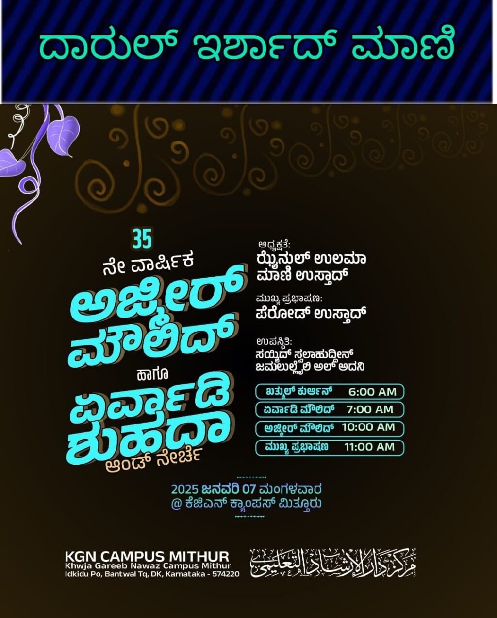 ಮಾಣಿ ದಾರುಲ್ ಇರ್ಶಾದ್ 35 ನೇ ಅಜ್ಮೀರ್ ಮೌಲಿದ್ ಮತ್ತು ಏರ್ವಾಡಿ ಶುಹದಾ ನೇರ್ಚೆ